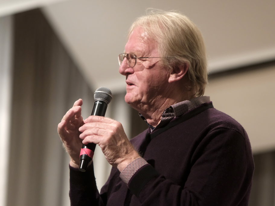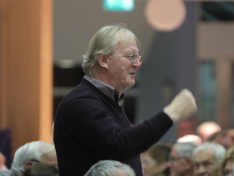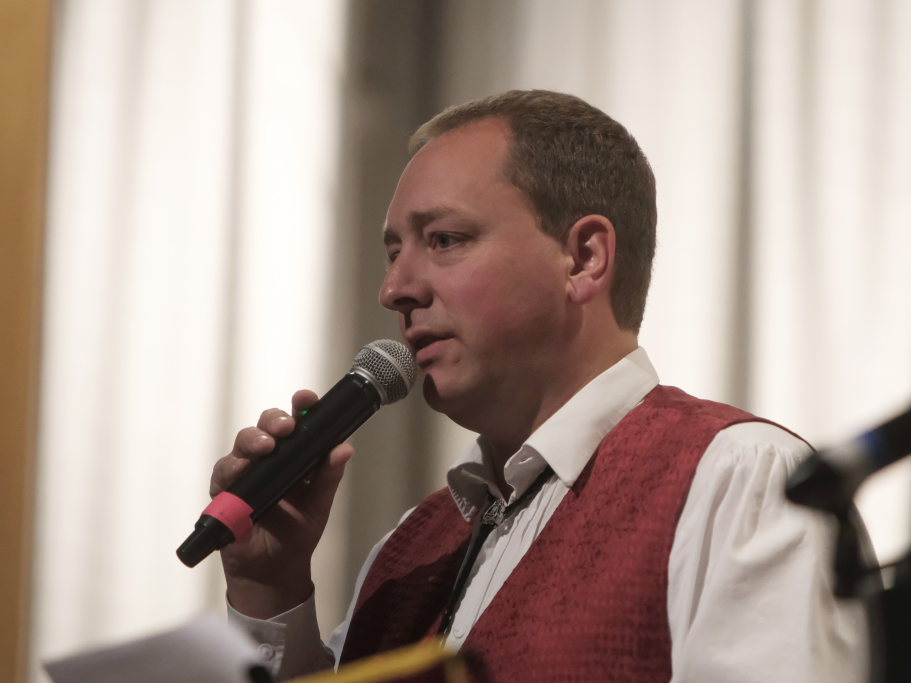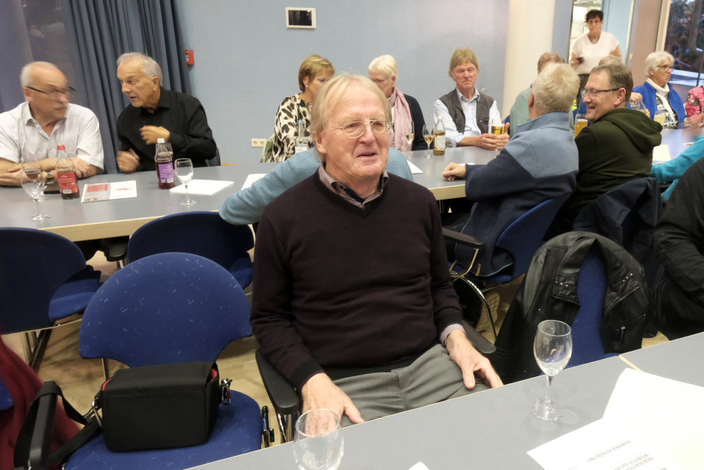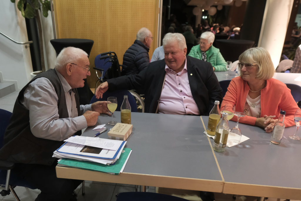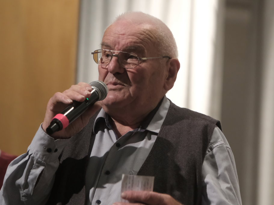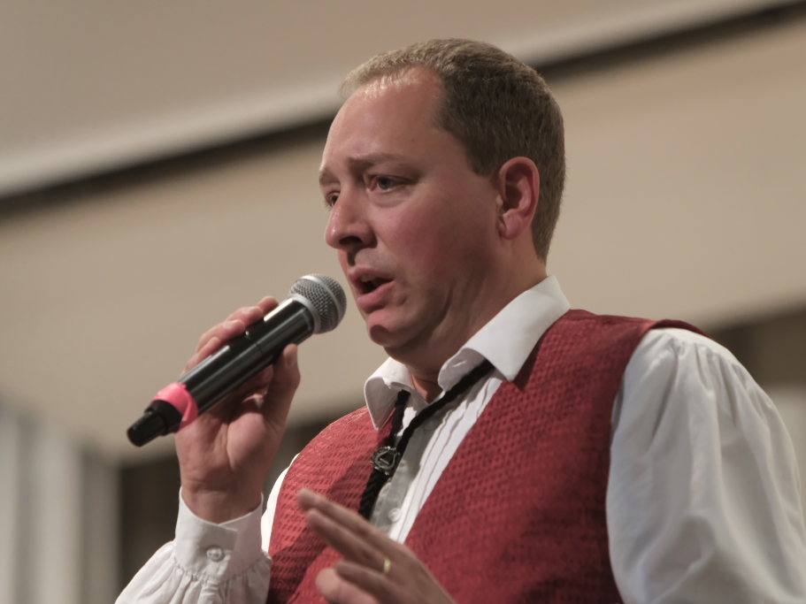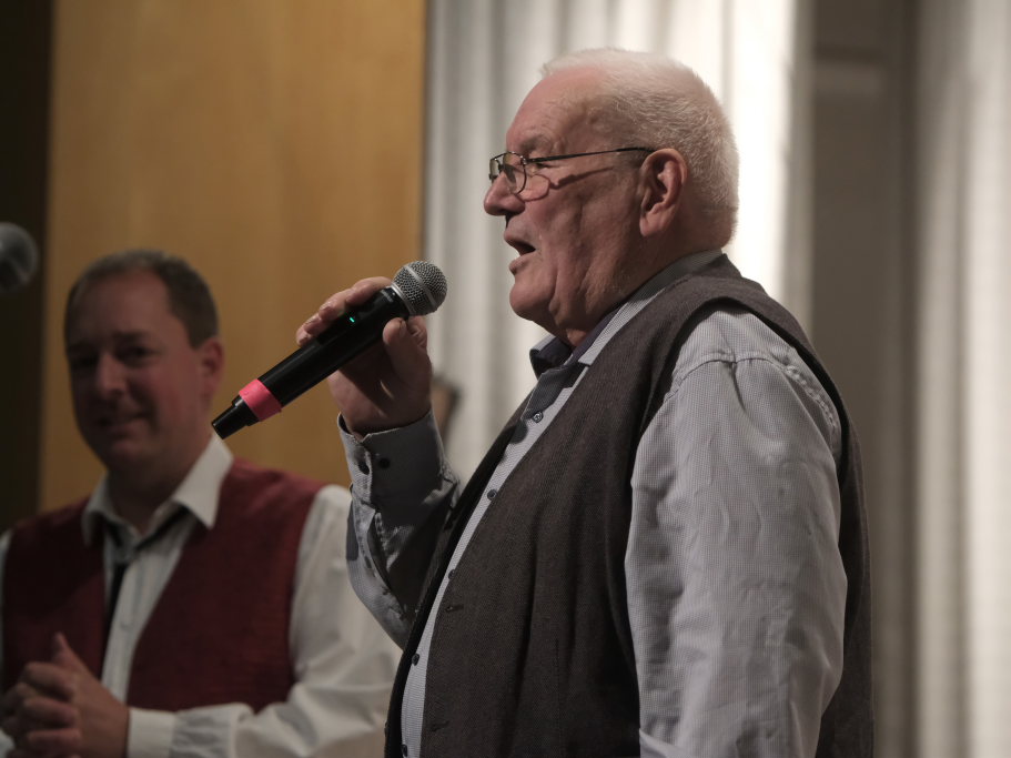 Mundartdichter Hugo Breitschmid (Bild) eröffnete mit einem lustigen Wortspiel zum Thema „Babbadeckl“. Dann wurde es ernst: Das Gedicht „Mein Traum“ befasste sich mit Krieg und Frieden. Und leitete damit geschickt zum nächsten Titel „Ich glaube“ dem von Simon Föhr gesungenen, bisher noch weitgehend unbekannten Udo-Jürgens-Anti-Kriegstitel über. Zu denen auch in den heutigen unruhigen Zeiten der später von Carina Kienle interpretierte frühere Grand Prix-Eurovision Gewinnertitel „Ein bisschen Frieden“ zählt.