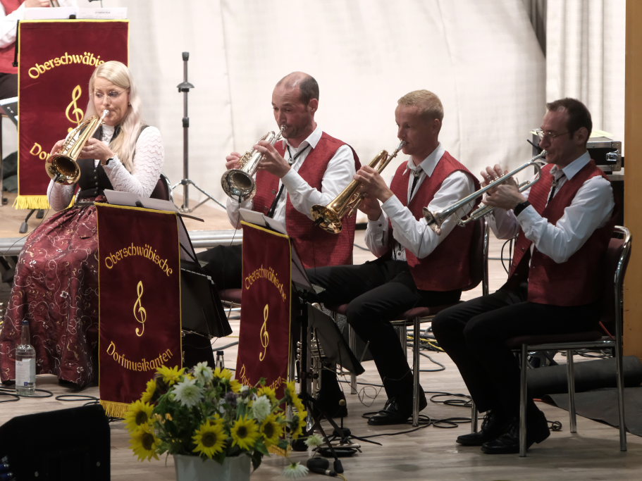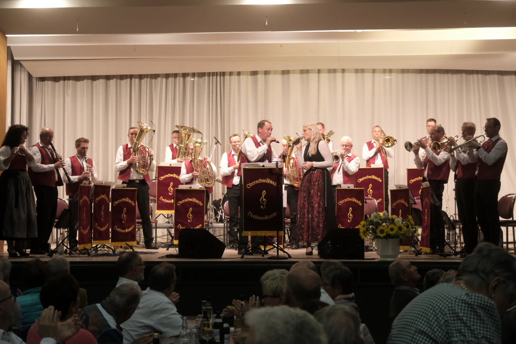 Bad Wurzach – Die Oberschwäbischen Dorfmusikanten (OSDM) traten mit ihrem neuen Dirigenten Simon Föhr zu zwei Gastspielen in der Kurhaus-Kulturschmiede (Kursaal) in Bad Wurzach an. Als Ehrengäste hatten sie Peter Schad und dessen langjährige Sängerin Conny eingeladen. Und gaben mit Mundartdichter Hugo Breitschmid der Veranstaltung noch eine literarische Note.