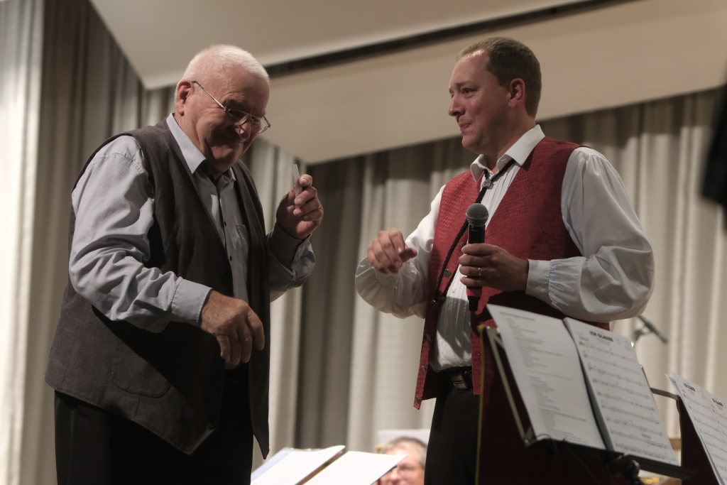 Peter Schad durfte wie in der guten alten Zeit noch einmal „seine“ OSDM bei seiner neuen Jawoi-Polka dirigieren.
