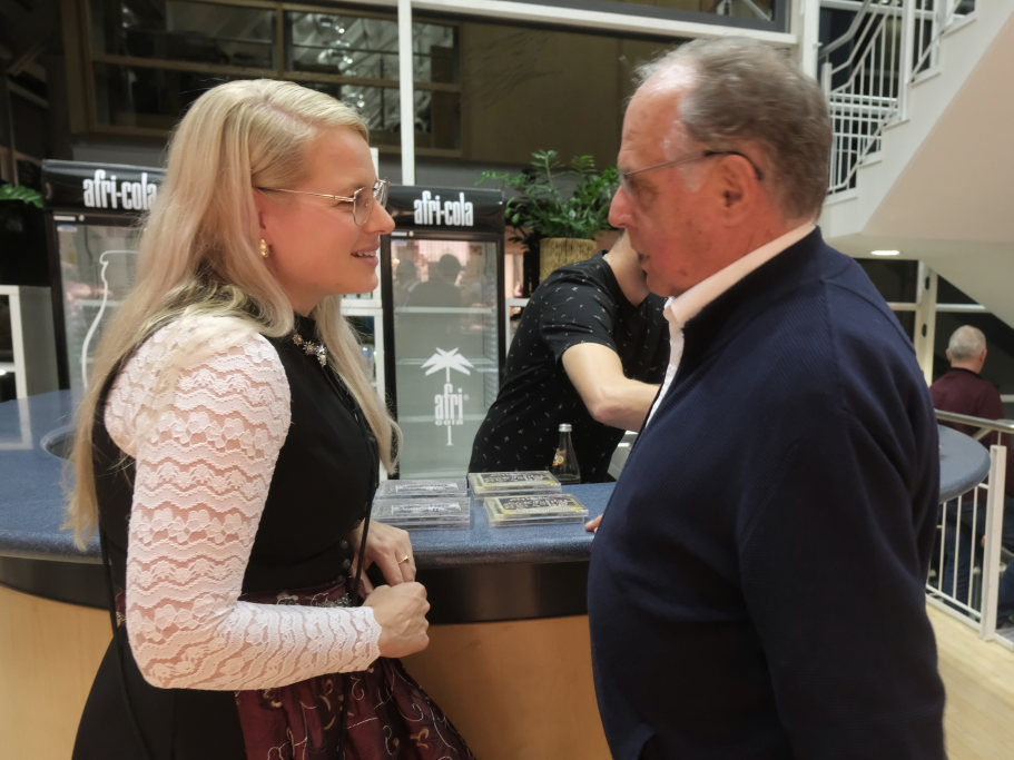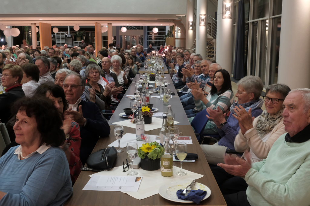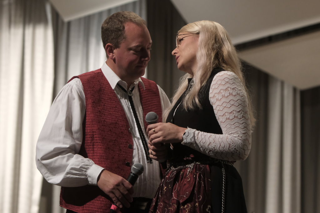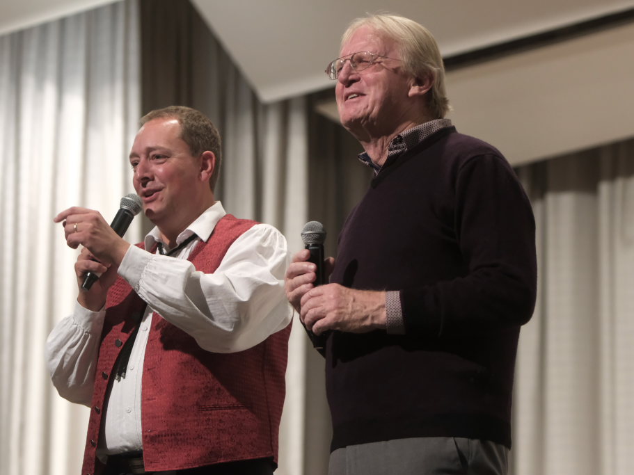 „Gabriellas Song“ aus dem Film „Wie im Himmel“ sorgte für Gänsehautmomente und Carina Kienle empfahl, auch den Film einmal anzuschauen. Mit dem Lied „Nessaja“ aus dem berühmten Tabaluga-Musical von Peter Maffay zeigte Simon Föhr, dass auch er seine stimmlichen Qualitäten zu nutzen weiß. Nicht verkneifen konnte er sich mit dem ihm eigenen Humor einen weiteren Seitenhieb auf den Ex-Kommissar Michael Kuhn, der jetzt musikalisch auf dem Münchener Oktoberfest tätig war, mit dem Kommissar-Witz: „Kommt die Tochter des Kommissars aus dem Schullandheim mit den Worten nach Hause: Ich bin schwanger, hier ist die Liste der Verdächtigen.“