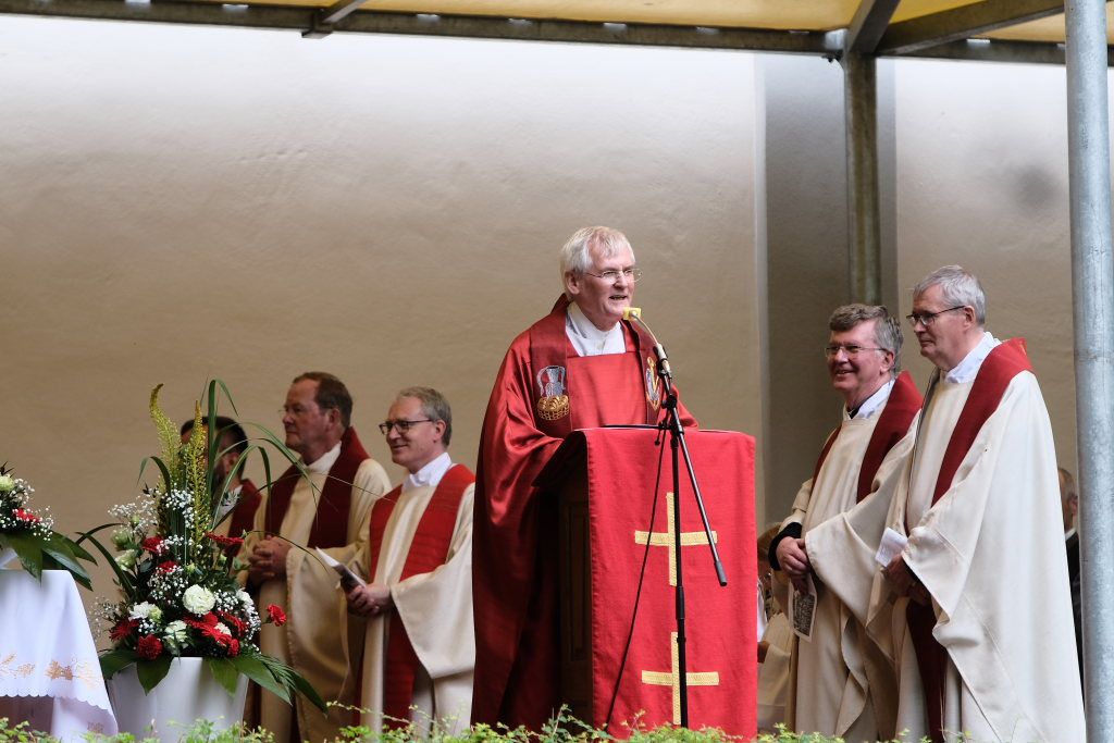 Lang war die Liste der Gäste, die vom Hausherrn, Superior Pater Konrad (Bild), begrüßt wurden. Da war zum einen die Geistlichkeit, allen voran der diesjährige Segenspender im Heilig-Blut-Wagen, Pfarrer Norbert Wahl, der vor wenigen Tagen sein Diamantenes Priesterjubiläum gefeiert hatte; dann der Provinzial der Salvatorianer Pater Dr. Friedrich Emde sowie der Patronatsherr der Gottesberg-Kirche, Seine Duchlaucht Fürst Erich von Waldburg-Zeil.
