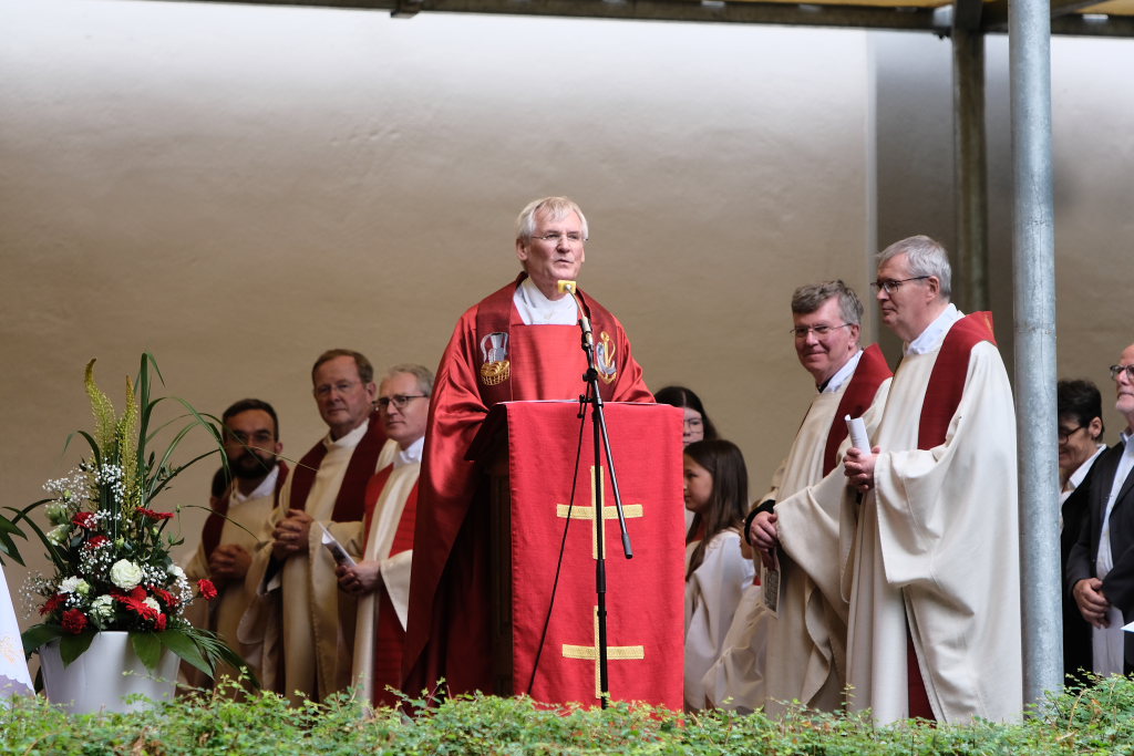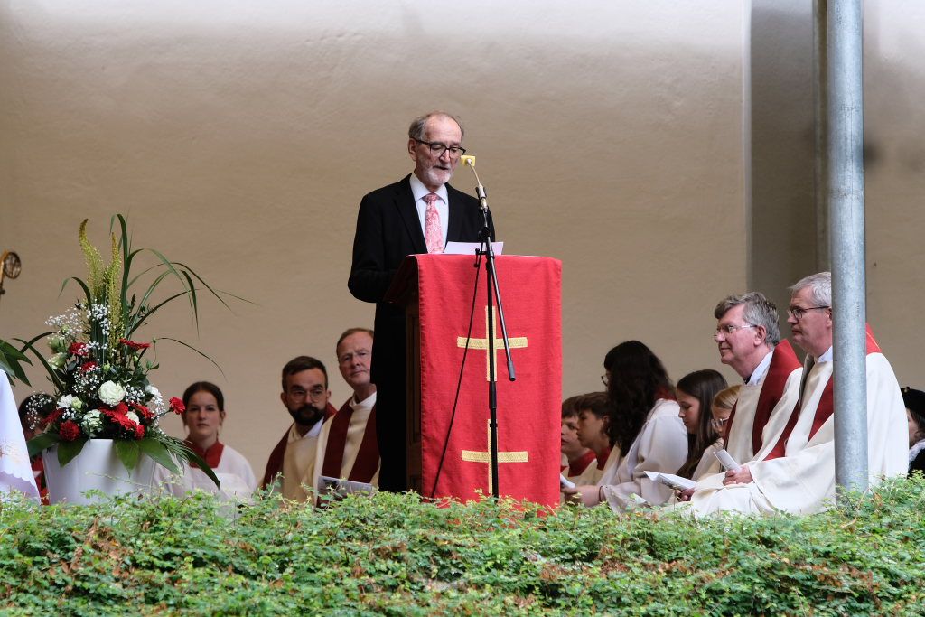 „Was wäre ein Gottesdienst im Freien ohne Blasmusik?“, rief er voller Lob und Anerkennung aus. Um sogleich die Antwort zu geben: „Wie wenn das Mikrophon ausfallen würde.“