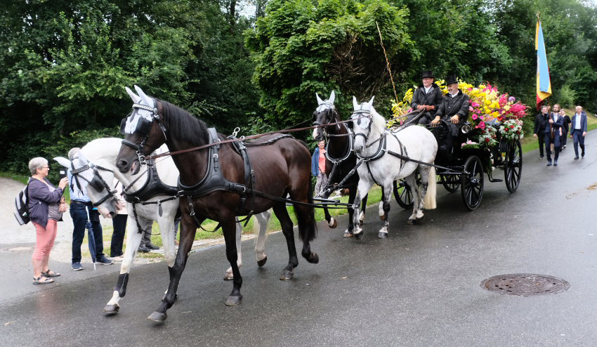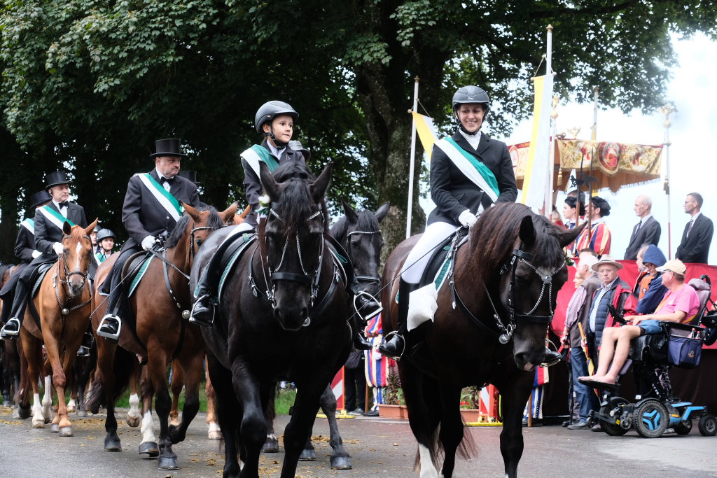 Bad Wurzach – Vinzenz Wohlwend OCist, Abt der Zisterzienser-Abtei Wettingen-Mehrerau bei Bregenz, der zuvor mit der Heiligblutreliquie die Blutreiter gesegnet hatte, hatte den Festgottesdienst unter das Leitwort „Herz Jesu – König und Mittelpunkt aller Herzen“ gestellt. Dieses Motiv mit lateinischer Umschrift findet sich einem Fenster seiner Abtei prangt.