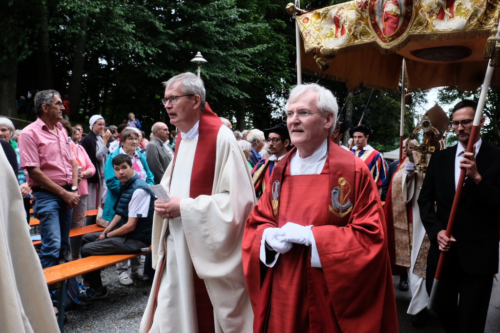 Lang war die Liste der Gäste, die vom Hausherrn, Superior Pater Konrad (Bild), begrüßt wurden. Da war zum einen die Geistlichkeit, allen voran der diesjährige Segenspender im Heilig-Blut-Wagen, Pfarrer Norbert Wahl, der vor wenigen Tagen sein Diamantenes Priesterjubiläum gefeiert hatte; dann der Provinzial der Salvatorianer Pater Dr. Friedrich Emde sowie der Patronatsherr der Gottesberg-Kirche, Seine Duchlaucht Fürst Erich von Waldburg-Zeil.