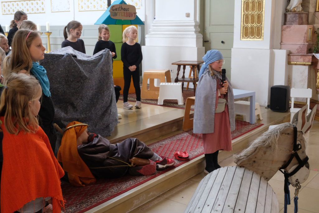 Und bei der Nachmittagsvorstellung war das Spiel der kleinen Schauspieler mit etwas mehr Erfahrung fast noch intensiver und unter die Haut gehender als am Vormittag, fand Stadtpfarrer Stefan Maier, der vor der Aufführung die Begrüßung der zahlreichen Gäste übernommen hatte.
