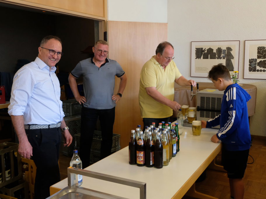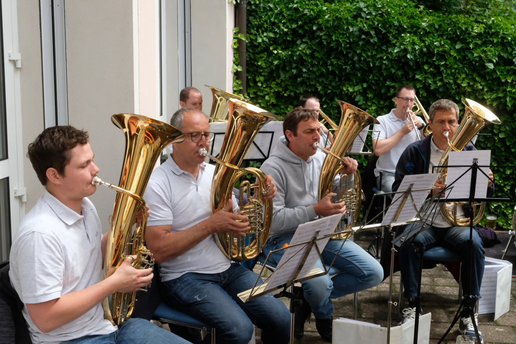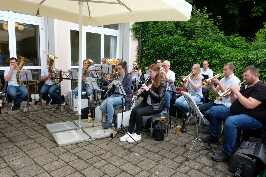 Die Stadtkapelle bestritt, als klar war, dass das Wetter halten würde, mit kleiner Besetzung musikalisch den Frühschoppen. Bei Gelegenheiten wie diesen zeigen die Musiker, dass sie auch ohne ihre musikalische Leiterin zurecht kommen. Vorstandsmitglied Wolfgang Groesser gab hier den Takt vor.
