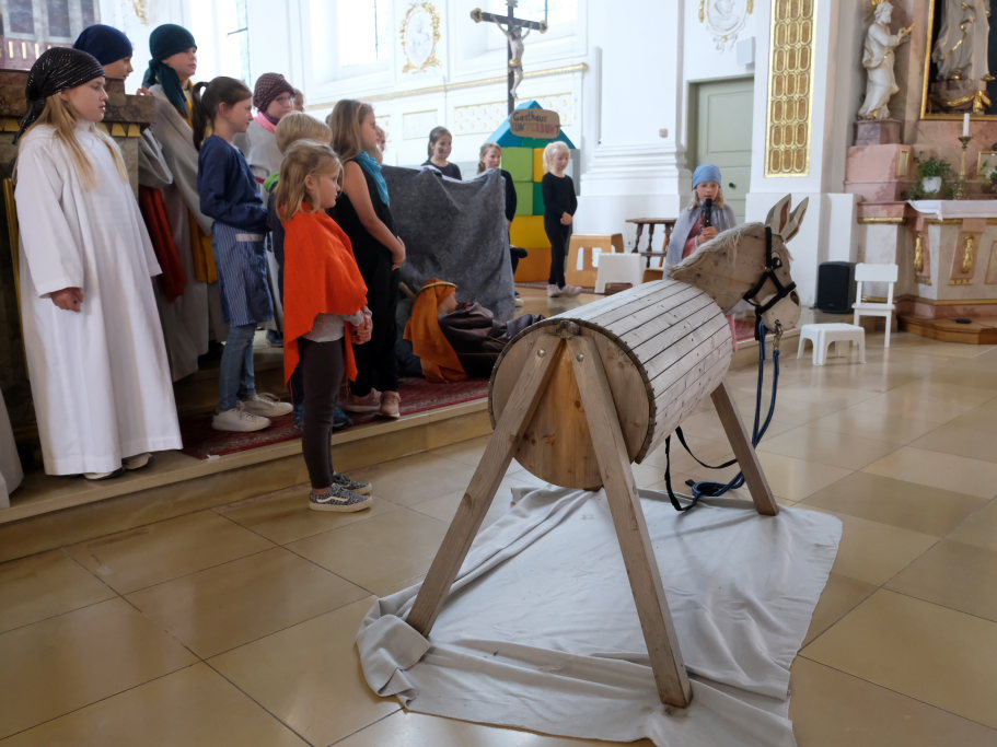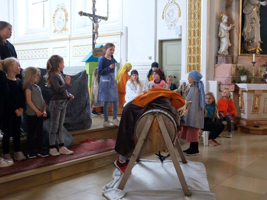 Und bei der Nachmittagsvorstellung war das Spiel der kleinen Schauspieler mit etwas mehr Erfahrung fast noch intensiver und unter die Haut gehender als am Vormittag, fand Stadtpfarrer Stefan Maier, der vor der Aufführung die Begrüßung der zahlreichen Gäste übernommen hatte.