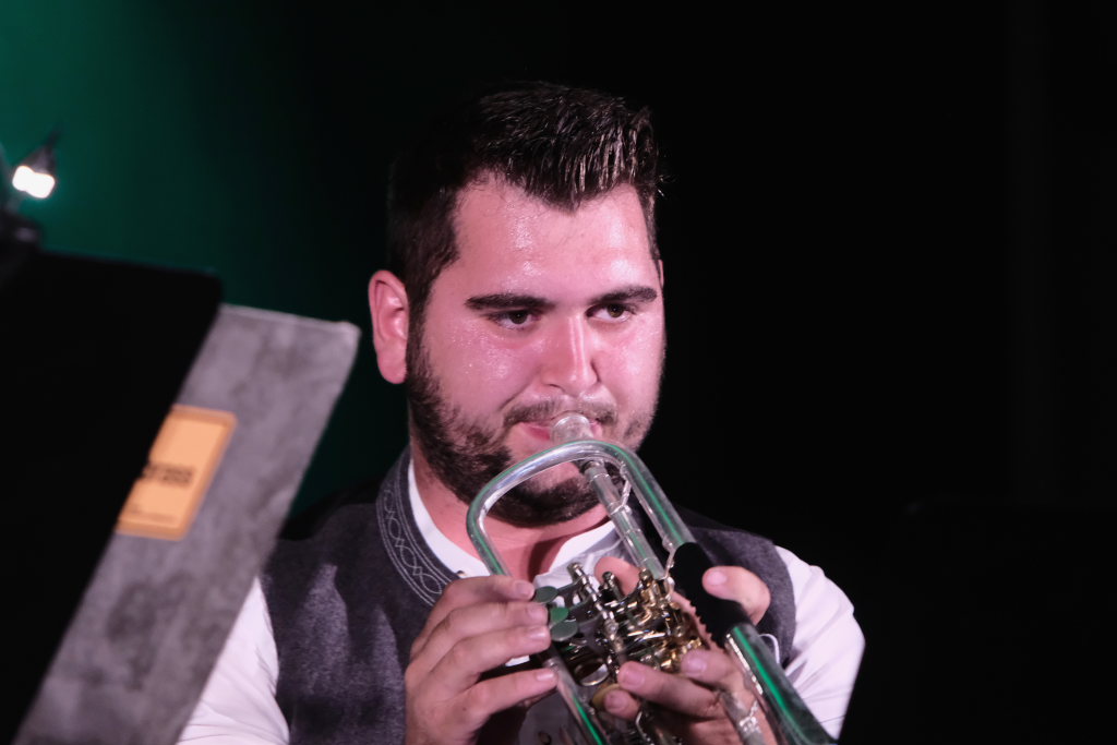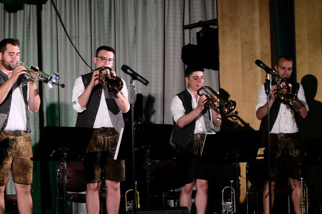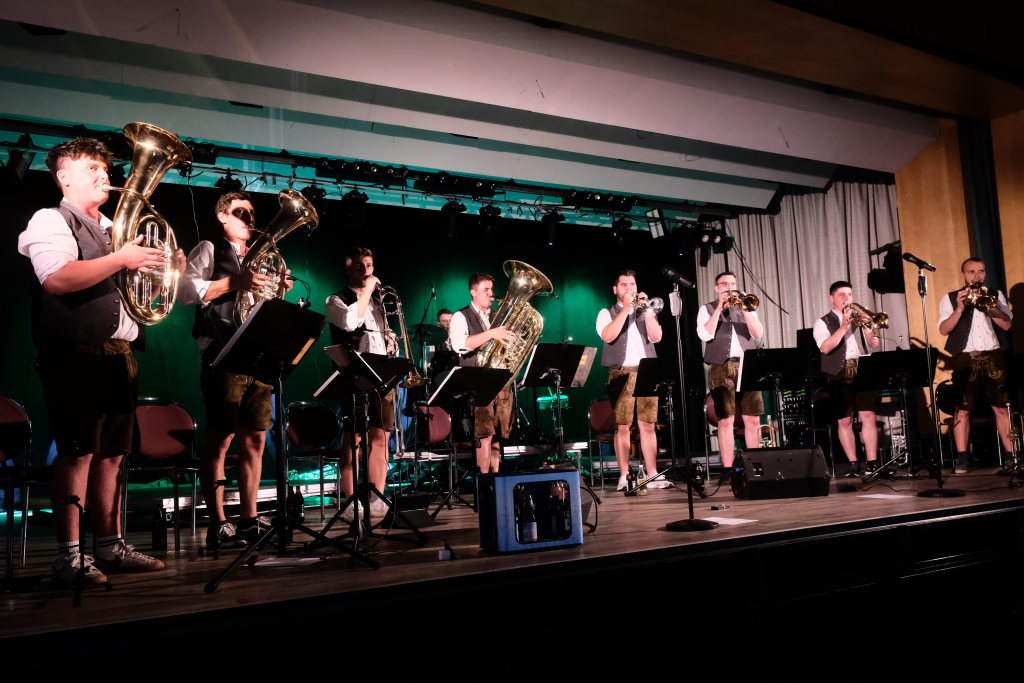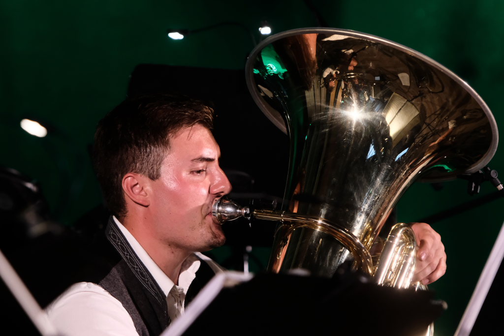 Im ersten Teil ihres Konzertes spielten die Blasmusiker, die aus verschiedenen Musikkapellen der Umgebung von Leutkirch kommen, wo fast jeder Ortsname mit einem -hofen endet, traditionelle Festzelt-Stimmungsmusik mit bekannten Polkas und Märschen. Wie etwa den „Böhmischen Traum“, komponiert von Norbert Gälle, der aus dem beschaulichen Oberschwaben einen unglaublichen Siegeszug in die ganzen Welt angetreten hat und selbst von DJ Ötzi gecovert wurde. Nicht fehlen durften natürlich die „Vogelwiese“ oder „Dem Land Tirol die Treue“.