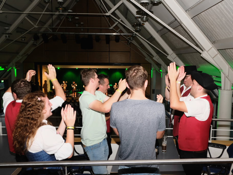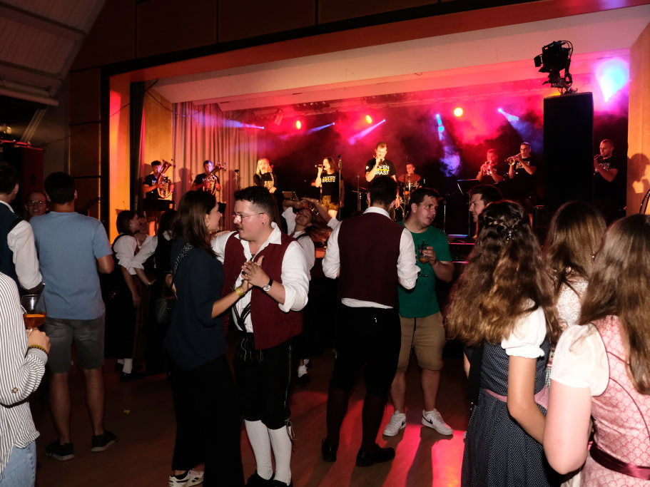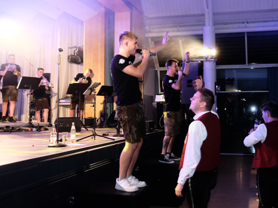 Für beste Stimmung im Saal sorgten dabei auch die – unschwer an ihren Uniformen zu erkennenden – Musikanten, die als Feierbiester nach dem kirchlichen Fest sich noch ein wenig austoben und ihren Spaß haben wollten.