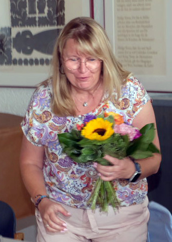 Christine Uhl, viele Jahre in der Hospizarbeit engagiert, wurde mit Dank und Blumen verabschiedet.
