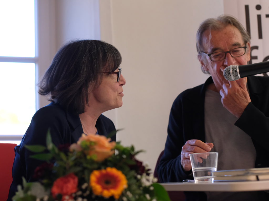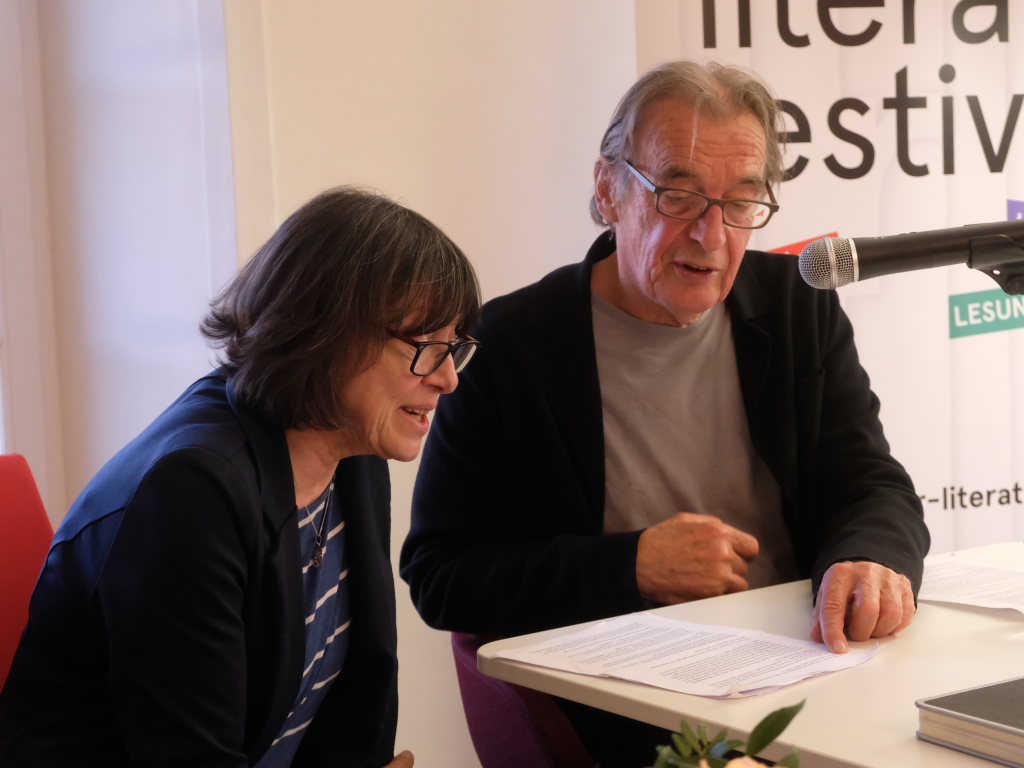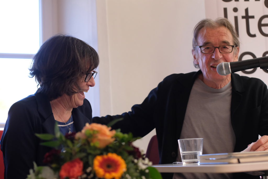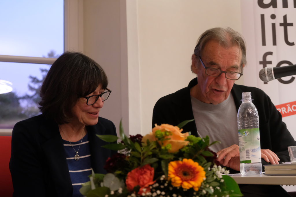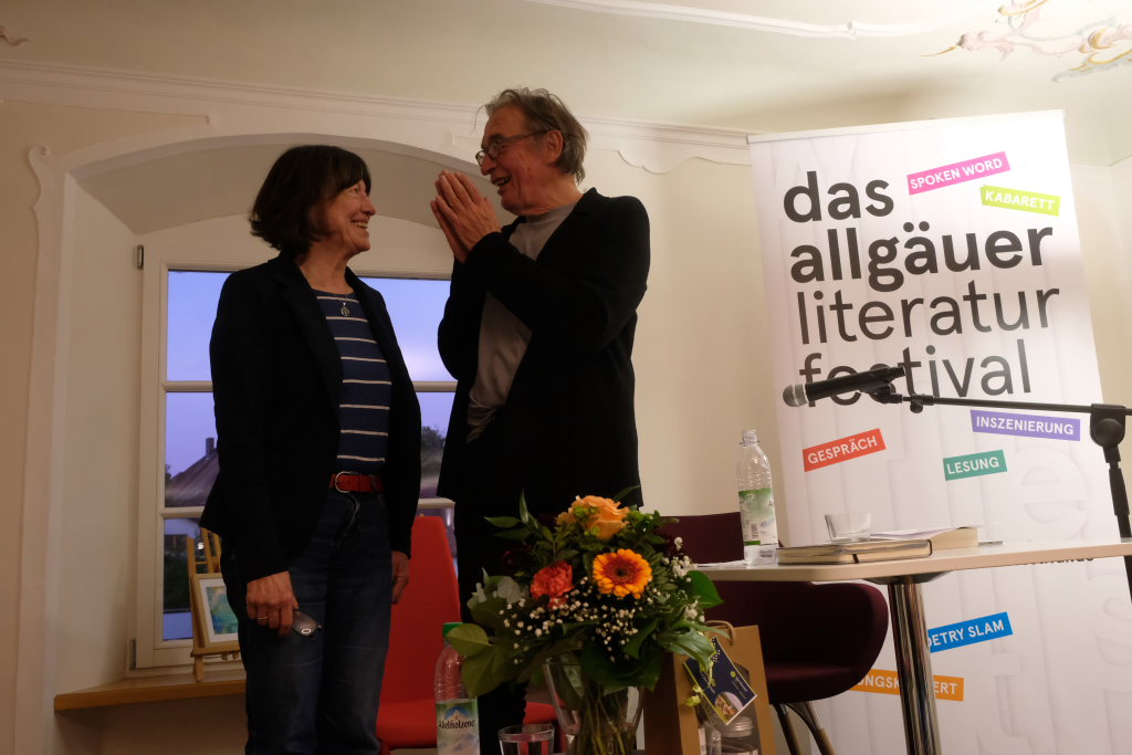 Zum Einstieg in die Lesung zeigte Schorlau sogleich, dass er mit einer gehörigen Portion Humor gesegnet ist. Im Rahmen seiner Recherchen sei er auf einen Feldberg-Ranger zugegangen und habe gesagt: „Ich möchte einen Mord begehen und suche dafür den geeigneten Platz!“ Erst als er diesem erklärte, dass er das für sein neues Buch brauchte, habe der Ranger ihm begeistert geholfen, die geeigneten Plätze, wie den Felsenweg am Feldsee zu finden. „Das Opfer hatte ich da auch schon im Kopf.“ Als er die ersten Dialoge von Denglers Ankunft auf dem Bauernhof seiner Mutter fertiggestellt hatte, überzeugten sie ihn noch nicht. Deswegen wandte er zwei literarische Tricks an: Er wechselte für die Figur des Georg Denglers in die persönlichere Ich-Form und ließ die Mutter im breitesten Südbadischen Dialekt sprechen, was dem Leser einen direkteren Zugang zu ihr verschaffte. Nun hatte Schorlau allerdings ein Problem: Wie gut wird dieser Dialekt im Rest der Republik verstanden? Erst als einige Freunde aus Hamburg ihr OK signalisierten war klar, dass Schorlau die alte Dame im Dialekt reden ließ. Und ein weiteres Problem, dessen er sich beim Schreiben noch gar nicht bewusst war: Da er ja den Dialekt nicht sprechen konnte, musste er hoffen, dass bei Lesungen wie der in Bad Wurzach keine Badener da sein würden. Oder wie jetzt eine so perfekte Ergänzung wie Silvia Fritsch, die sich bei der Lesung als seine „Partnerin“ als absoluter Glücksgriff erwies.