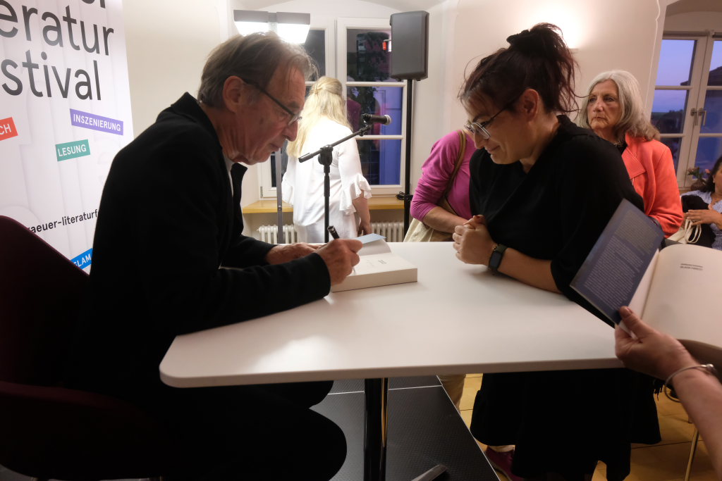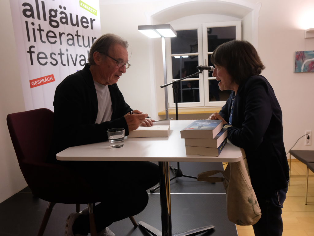Auch wenn der Schriftsteller kaum etwas über den eigentlichen Plot des Buches preisgab, waren seine Ausführungen immer mit viel trockenem Humor gewürzt. Gerade deshalb wurde die Signierstunde mit Schorlau dann auch für die Inhaberin des Buchladens zu einem guten Geschäft, denn teilweise trugen manche Lesungsbesucher bis zu fünf signierte Exemplare von „Black Forest“ nach Hause. Nach der Lesung zeigte sich Schorlau sehr angetan vom Wurzacher Publikum und natürlich den historischen Räumlichkeiten. Das Publikum schlug mit der Anzahl von knapp 90 verkauften Karten sogar die bekanntere Gaby Hauptmann bei deren Lesung im Rahmen des Festivals vor einigen Jahren.