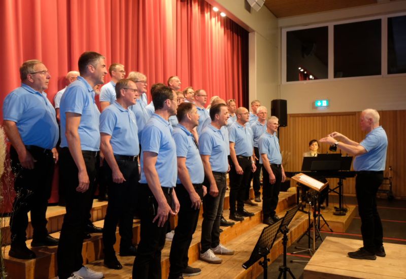 Hauerz / Seibranz – Solange die eigene Halle in Seibranz wegen der grundlegenden Sanierung noch nicht genutzt werden kann, tritt der örtliche Männerchor auswärts auf – so beim Frühlingskonzert 2025 im Dorfstadel Ziegelbach, beim Weinfest jetzt in der Festhalle in Hauerz, im Frühjahr am 14. April dann wieder in Ziegelbach. Die Sänger des Männerchors „Frohsinn” Seibranz um Dirigent Erich Minsch und Vorstand Stefan Veser fühlten sich deshalb wie „Weltstars auf Tournee”, erklärte Willi „Willi-Bu“ Butscher bei seiner Anmoderation scherzhaft.