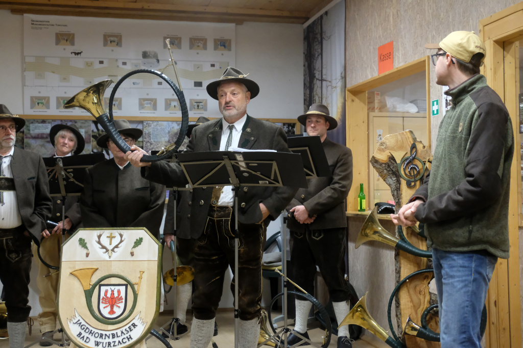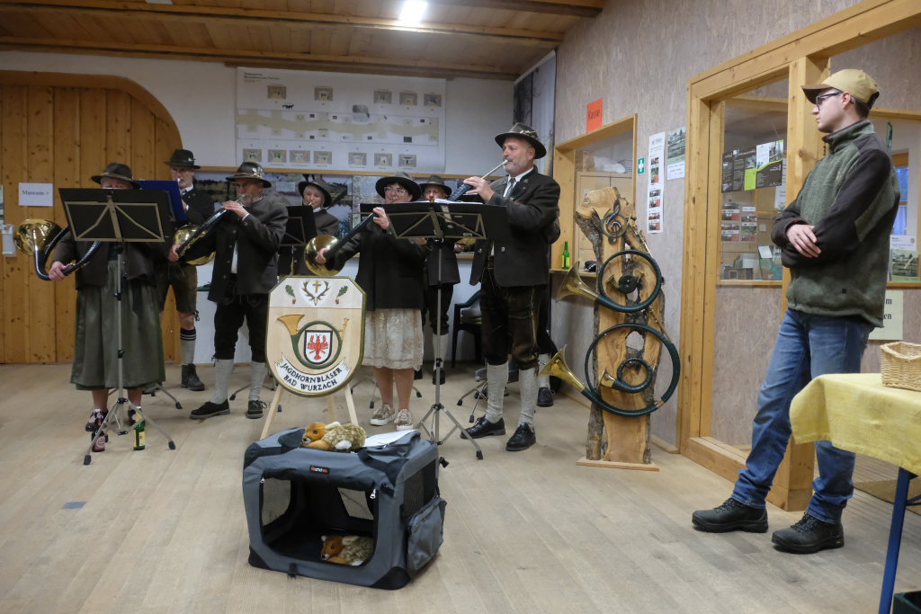 Bad Wurzach – Die Jagdhornbläser Bad Wurzach haben mit einem kleinen Konzert im Oberschwäbischen Torfmuseum die Saison eröffnet. Als Gast hatten sie Alexander Dreher aus Truilz, der gemeinsam mit seinem Team und Drohnen erfolgreich ist, Rehkitze vor dem Mähtod zu bewahren.