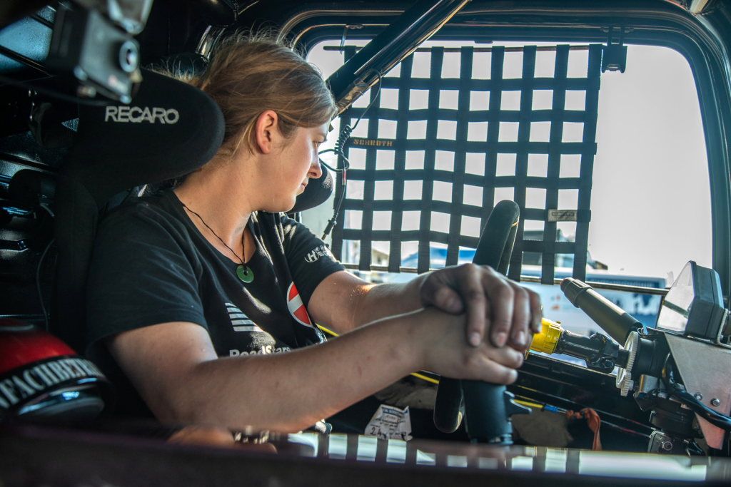 Bei einem ihrer Heimatbesuche „infizierte“ sie sich auf einer Ausstellung in Ravensburg mit dem Rennfieber: ein dort ausgestellter Renntruck faszinierte sie so sehr, dass sie dem Menschen, der den Stand betreute „acht Stunden auf die Nerven gegangen bin“. Dieser war zufälligerweise der Chef des Teams und suchte einen Fahrer, der während der Saison mit dem Auflieger Material und Fahrzeuge zur Rennstrecke pilotierte. Um das in Nürtingen beheimatete Team und die Arbeit kennenzulernen, pendelte sie im Winter häufig von Schweinfurt, wo sie noch wohnte, dorthin. Bald stellte sich heraus, dass dem Team auch ein Mechaniker fehlte. Also musste sie auch dort und später auf dem Rennplatz beweisen, dass sie es – auch unter Drucksituationen – kann. Und so kam es, dass sie als Chefmechanikerin das Fahrzeug des Europameisters betreute. Die Truck Europameisterschaft ist eine FIA-Rennserie mit dem entsprechenden Reglement. Das heißt, jedes Team baut seinen Renn-Lkw nach den Vorgaben des Reglements selbst auf. Sie sah, dass es eine große Chance für sie war, enorm viel zu lernen – und das als Mini-Jobber. Daher zog sie nach Tübingen. Zwischendurch nahm sie sich aber noch eine Auszeit: Während der Wintermonate führte sie Geländetouren in Nordafrika, in Tunesien und Marokko und sammelte dort erste Wüstenerfahrungen, die ihr später noch sehr nützlich werden sollten. „Es war eine sehr schöne Zeit, mit freundlichen und offenen Menschen.“