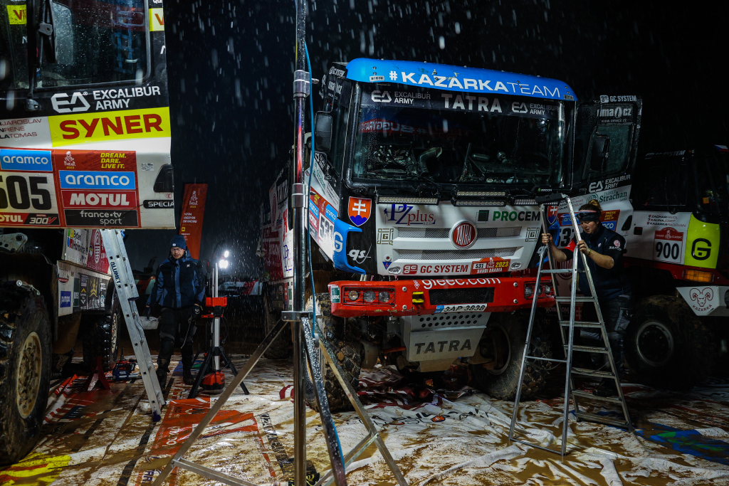 So startete sie am ersten Weihnachtsfeiertag 2022 in die „härteste Zeit meines Lebens“. Von Prag aus ging der Flug nach Saudi-Arabien. Alle zuvor ausgesprochenen Warnungen trafen ein. 600 – 800 km pro Tag auf unbefestigen Wegen waren im Begleitfahrzeug zurückzulegen, bei Tagestemperaturen von 40 Grad und Nachttemperaturen bis zu minus zwei Grad. „Nach der Fahrt musste sechs Stunden bis in die Nacht hinein geschraubt werden, wenn nichts kaputt gegangen war. Aber meistens war etwas kaputt…“. An Schlaf war in dieser Zeit kaum zu denken. „Deswegen konnte jeder nur eine Stunde fahren und musste dann abgelöst werden.“ Ihr Team bestand aus etwa 70 Leuten, die drei Lkw´s, einen Oldtimer-Lkw und zwei Buggys betreute. Neben den Technikern und Mechanikern war auch ein Physiotherapeut und ein Arzt mit dabei. „Diese brauchte es auch, weil nicht nur das Material nicht unendlich viel aushält, sondern auch die Ressource Mensch nicht unendlich belastbar ist.“ „Wenn mir jemand am zweiten Tag ein Rückflugticket angeboten hätte, ich hätte es glatt angenommen“, sagt Judith Ehrmann über die Strapazen in diesen Tagen und Wochen. Aber dennoch war ihr Team in jeder Klasse erfolgreich, denn es erzielte jeweils den dritten Platz.