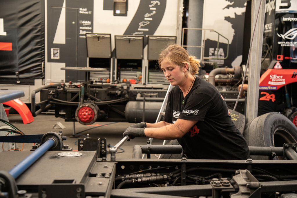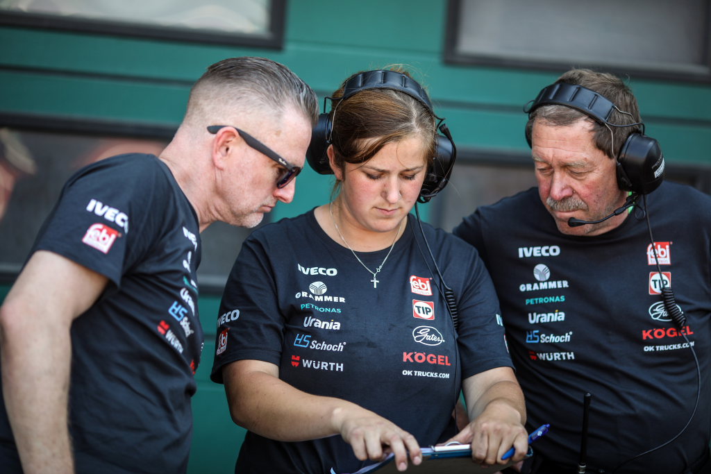 Danach machte sie das Gleiche wie im Vorjahr, nur eben als Festangestellte bei MB Motorsport. Als sich abzeichnete, dass MB Motorsport Ende 2018 aufhören wollte, suchte sie etwas Neues. Eigentlich hatte sie zur Jahreswende bereits einem Bekannten in England zugesagt, dort als Abschleppfahrer zu arbeiten, als ein Anruf aus Egenhausen aus dem Landkreis Lahr kam. Die Szene der Renntrucks-Rennen ist klein, es hatte sich herumgesprochen, dass sie gute Arbeit geleistet hatte. Norbert Kiss suchte für sein Team, das zwei Renntrucks einsetzte, einen Mechaniker-Meister. Dann also Egenhausen statt England. Der zweite Fahrer Steffen Fraas lag mit ihr auf einer Wellenlänge, erklärte ihr viel beim Aufbau der Trucks, so dass sie dabei sehr viel lernte. Mit ihm verbindet sie noch heute eine Freundschaft.