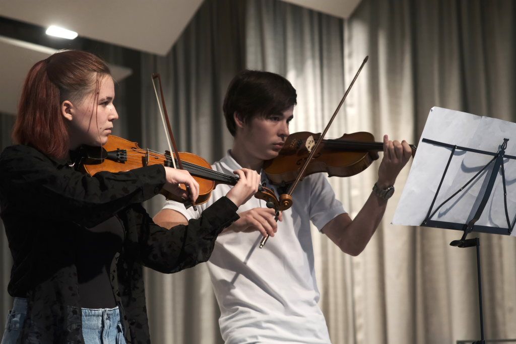 Den Walzer in a-moll op. 32, Nr. 2 von Frederic Chopin spielte am Flügel Maximilian Zerr mit großer Hingabe. Er ist wie Leni Angele Schüler von Larissa Bohr-Chernjak. Angele wollte das Gondellied von Cornelius Gurlitt und Regenspiel von J. Michael Nuyten gemeinsam mit Katharina Bohr präsentieren, die jedoch krankheitsbedingt nicht dabei sein konnte, weswegen Larissa Bohr-Chernjak einsprang.