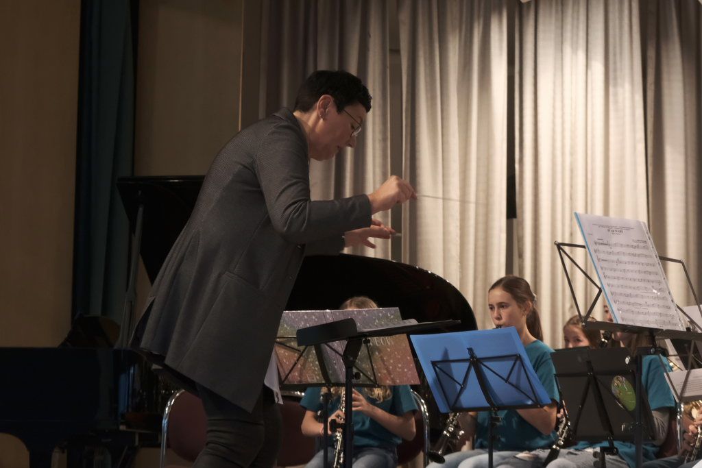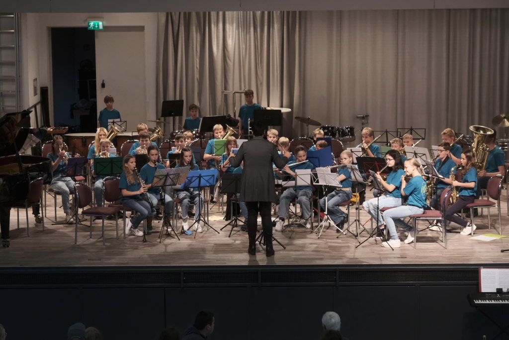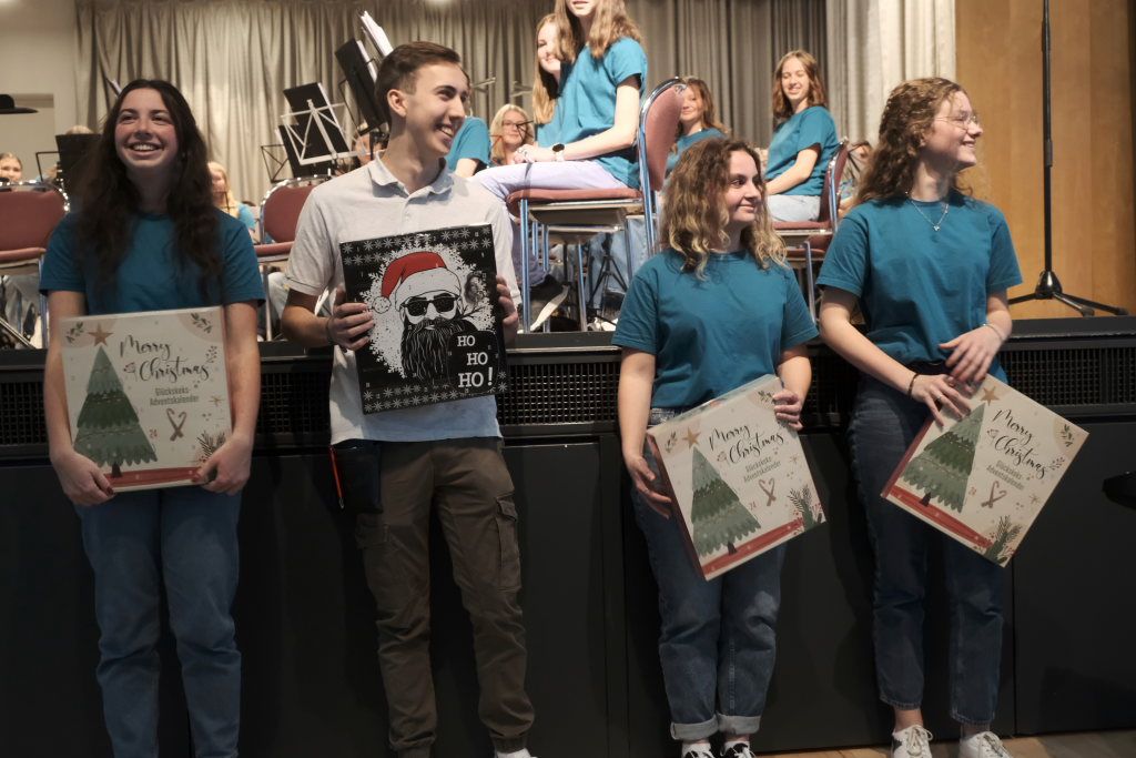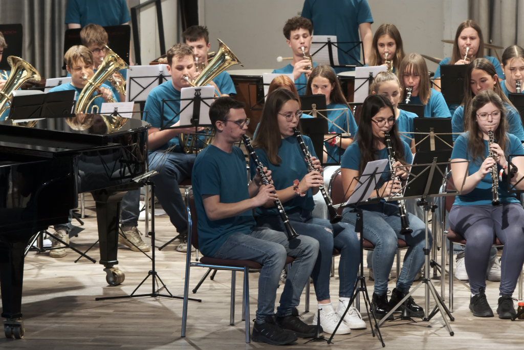 Vor der letzten Zugabe bedankte sich Petra Springer bei Delena Tanner, Amelie Stephan, Ramona Buchbinder und Leon Grösser, die teilweise schon länger als Springer selbst in der Jugendkapelle dabei waren und die Kapelle auch während Corona zusammengehalten hatten. Sie verlassen die Juka und werden zukünftig bei den „Großen“ mitspielen.