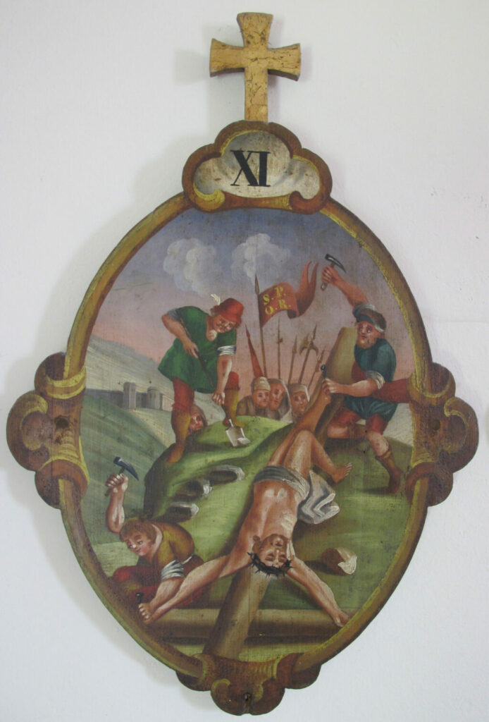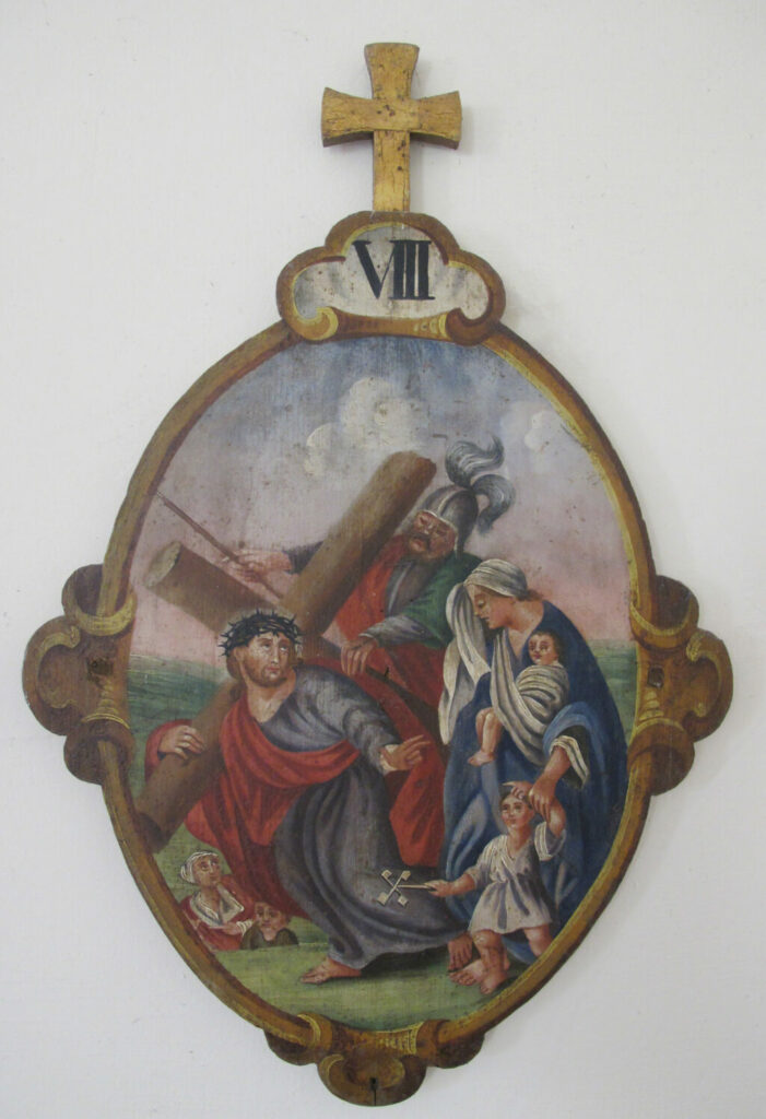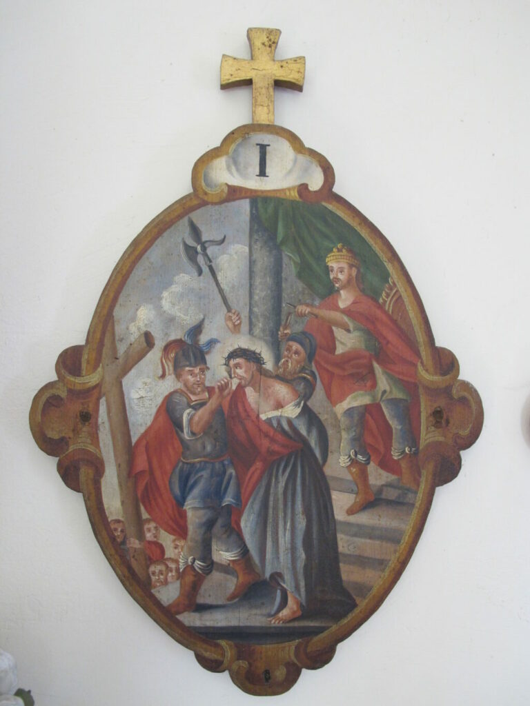Ursprünglich nicht vorgesehen, sollen nun die 14 aus dem Jahre 1851 stammenden Kreuzwegtafeln (Öl auf Holz) ebenfalls restauriert werden. Dafür gab es bisher dankenswerterweise Spenden und Spendenzusagen über 2100 €. Damit war die Voraussetzung geschaffen, um sieben der 14 Tafeln, die von der Hand des aus Eintürnen stammenden Vedutenmalers Josef Anton Mohr (1809 – 1888) stammen, zu restaurieren. Für die übrigen sieben Tafeln hatte die Kapellengemeinschaft am Morgen des 25. März um 9.00 Uhr über die Bildschirmzeitung um Spenden gebeten. Zur Mittagszeit meldete sich ein Gönner aus Bad Wurzach und sagte, er übernehme die Kosten für die restlichen Tafeln. Er und die anderen Spender machen damit der Kapellengemeinschaft eine Riesenfreude, denn es sähe einfach imperfekt aus, wenn im frisch hergerichteten Innenraum die “angestaubten” Kreuzwegtafeln aufgehängt würden.