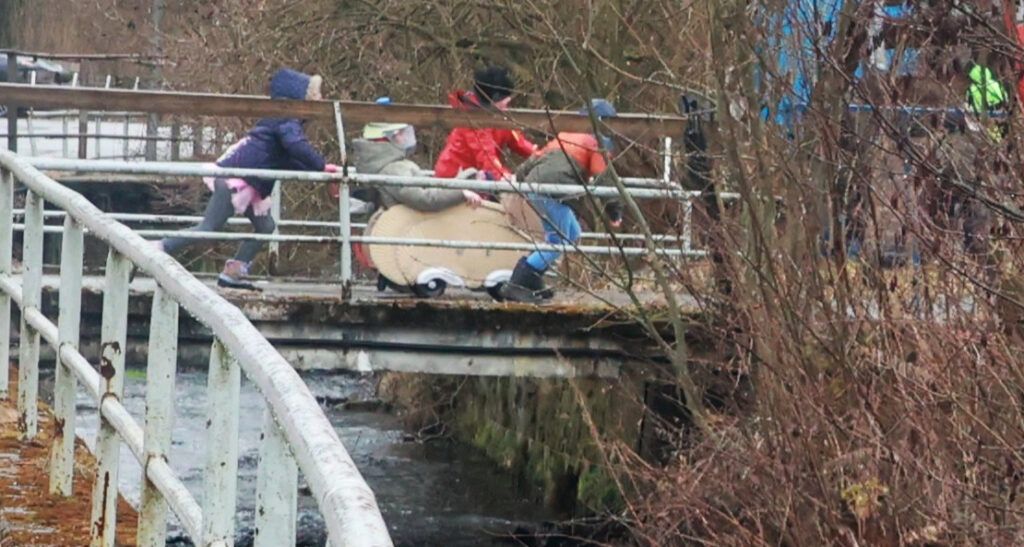 Der Regen ließ zwar das Wasser steigen, aber der Bach blieb brav im Bett. Auch die Brücke machte alles mit – obwohl sie, wie die Straße, längst renovierungsbedürftig ist. Am Ende rollten alle sicher ins Ziel. Sieger? Das ganze Dorf.