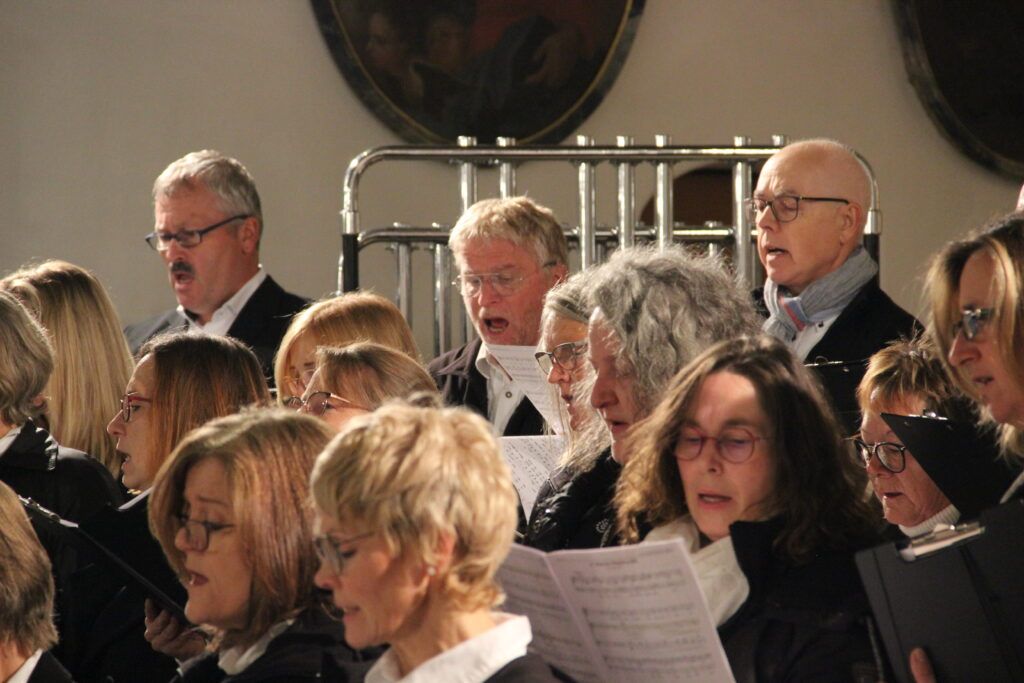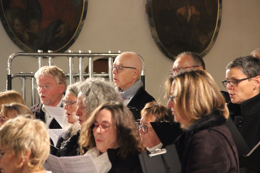 Dann war der Chor wieder in toto an der Reihe und brachte „Brother James’s Air“ zu Gehör, eine Vertonung von Psalm 23 („Der Herr ist mein Hirte“). Der in englischer Sprache gesungene Psalm wurde von Männer- und Frauenstimmen im Wechsel dargeboten.