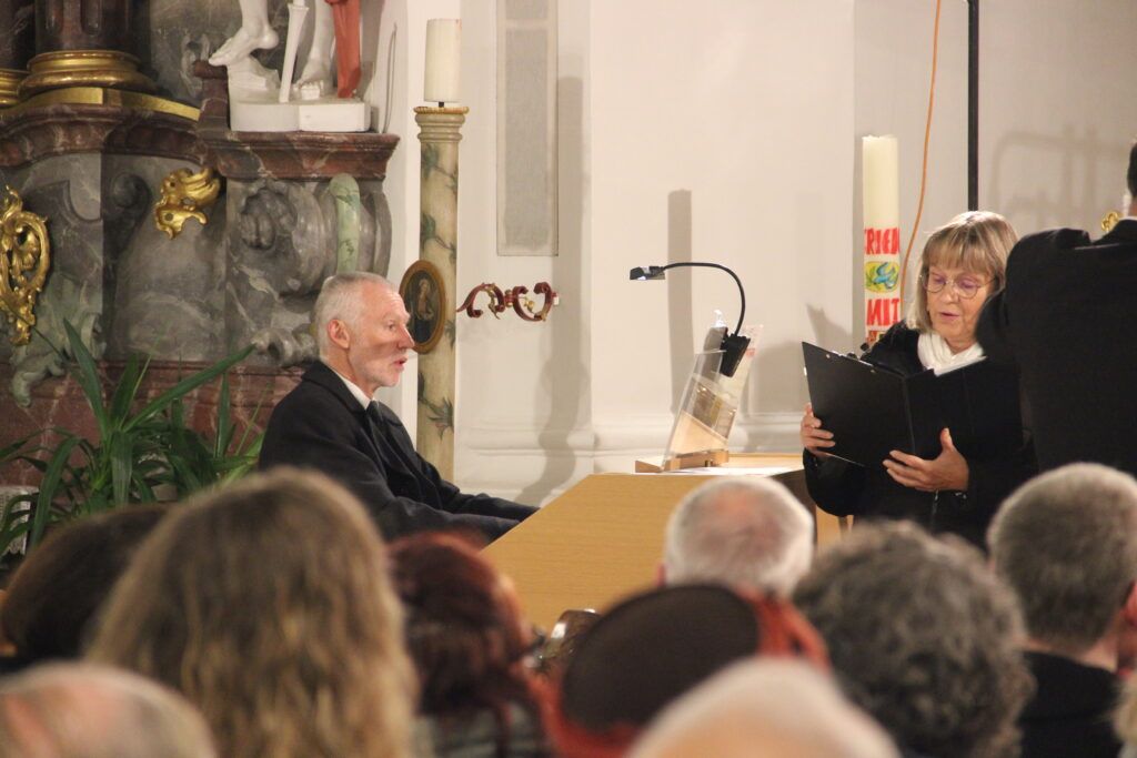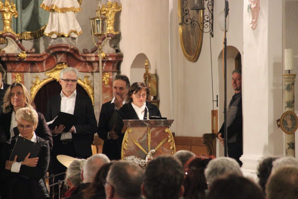 Sylvia Buchbinder bei der Begrüßung. Sie freute sich sehr über den starken Besuch und dankte dafür. Eigens begrüßt wurden die beiden Pfarrer Stefan Maier und Patrick Meschenmoser sowie der Arnacher Kirchengemeinderat mit seinem Gewählten Vorsitzenden Thomas Baumann (der beim Konzert mitwirkte) und die ehemaligen Mitglieder des Kirchenchores Arnach, von denen etliche anwesend waren.