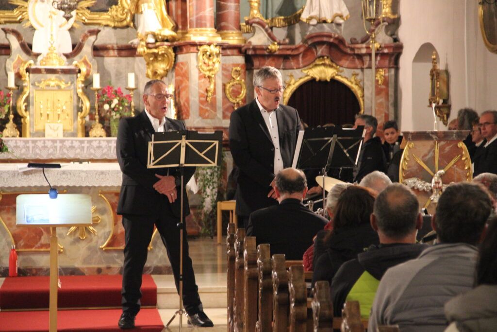 Zum „Panis angelicus“ in der Fassung von César Franck rückte der Chor zur Seite und gab den zwei Tenören Bruno Mösle (links) und Werner Rogg Raum für ihr Solo.