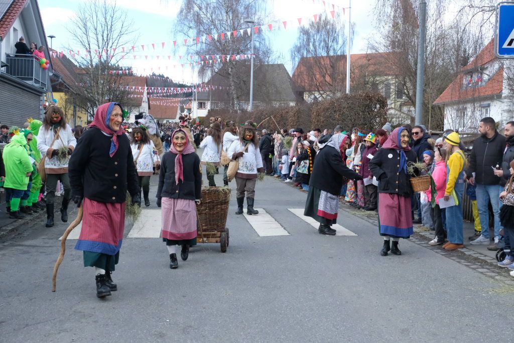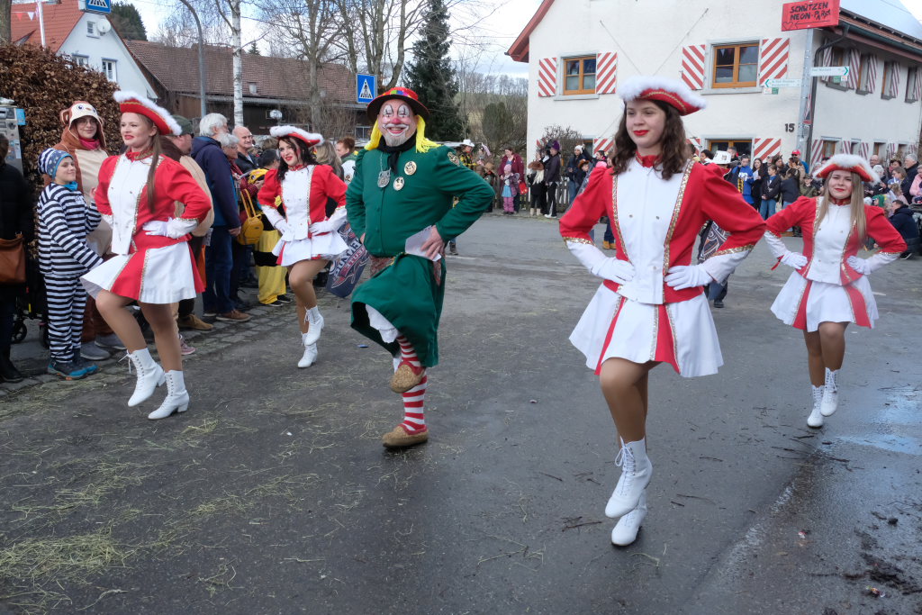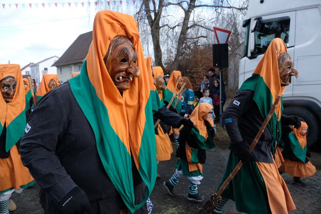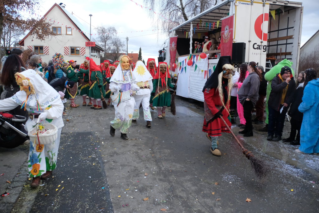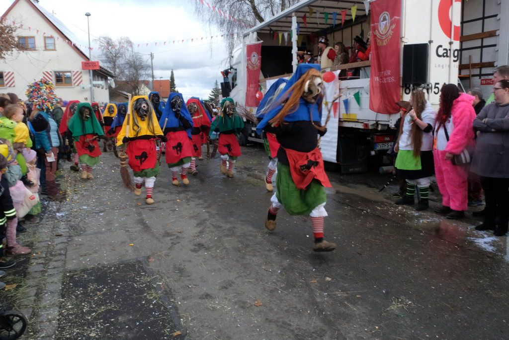 Mit den Unterschwarzachern Schwaaz´r Butz folgte eine weitere Zunft, bei denen die Chadalohs als Pate für die ANR-Aufnahme fungiert hatten. Alljährlich nicht fehlen durfte da natürlich nicht die Garde der LJG Unterschwarzach. Mit den reizenden Damen konnte auch Alex Wild wieder seine tänzerischen Fähigkeiten sowie seine Gelenkigkeit unter Beweis stellen. Ganz Bergatreute dürfte wieder einmal wie leergefegt gewesen sein, denn ein orange-grünes Jordanhexen-Meer flutete die Straßen des kleinen Ortes am nördlichen Riedrand. Auch die Baienfurter Henkerhaus Zunft und die Dora-Weibla aus Dornstadt sind Patenzünfte der Chadalohs. Natürlich nicht fehlen durfte die Haidgauer „Konkurrenz“, die Haidgauer (… )Sippe, die in der Vergangenheit im Zuge des Gender-Wahns einen Teil ihres Namens eingebüßt hat und der Vertreter beim Zunftmeisterempfang mit dem Singen des Volksliedes „Lustig ist das (Beep)-Leben“ ein kleines Statement abgaben.
