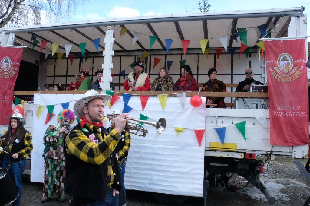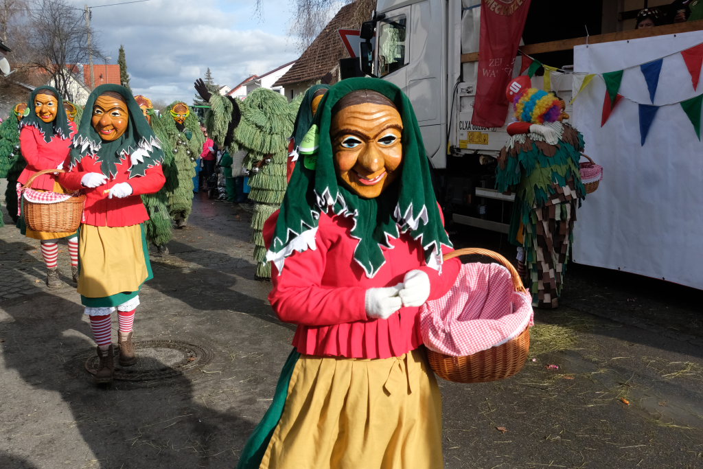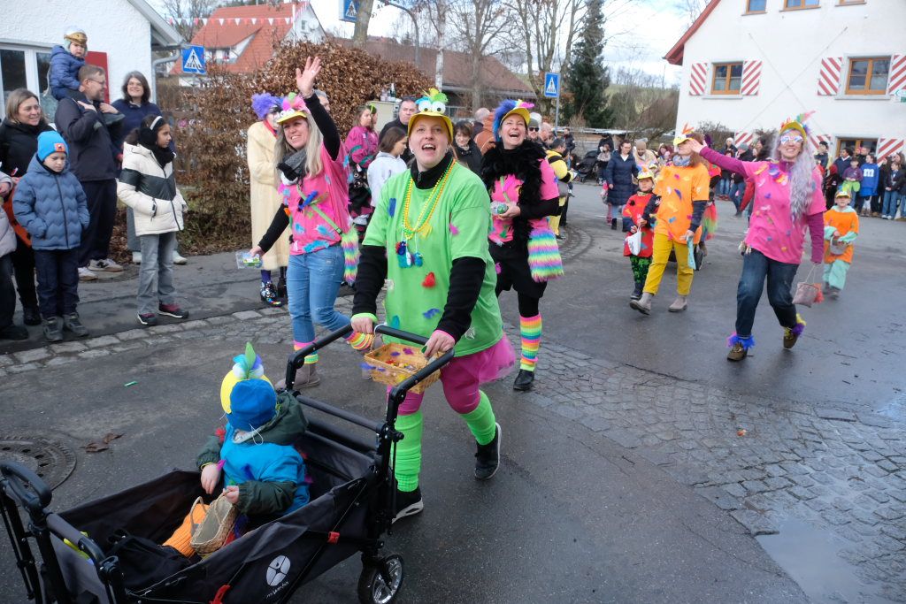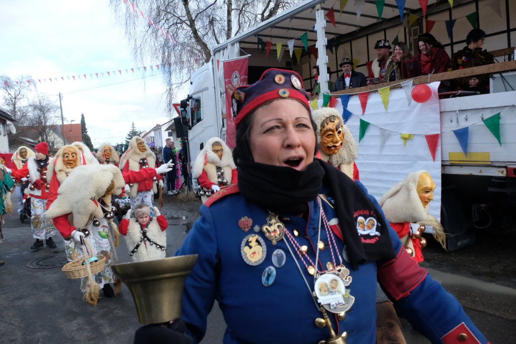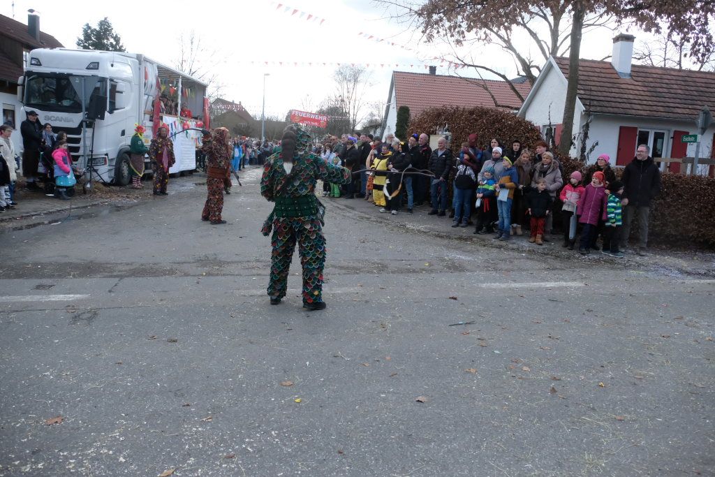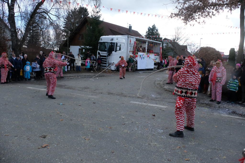 Haidgau – Beim diesjährigen Narrensprung haben die Verantwortlichen bewusst die Bremse gezogen, nachdem beim Jubiläum im Vorjahr alle ANR-Zünfte eingeladen werden mussten. Mit 48 Umzugspositionen war er deutlich kürzer als im Vorjahr. Gleichgeblieben aber ist der hohe Unterhaltungswert, den Günther „Turbo“ Angele und Alex Wild – in diesem Jahr als Clowns getarnt – als Moderatoren und Ansagern den zahlreichen Besuchern und den Ehrengästen auf der zur Ehrentribüne umgestalteten LKW-Pritsche boten.