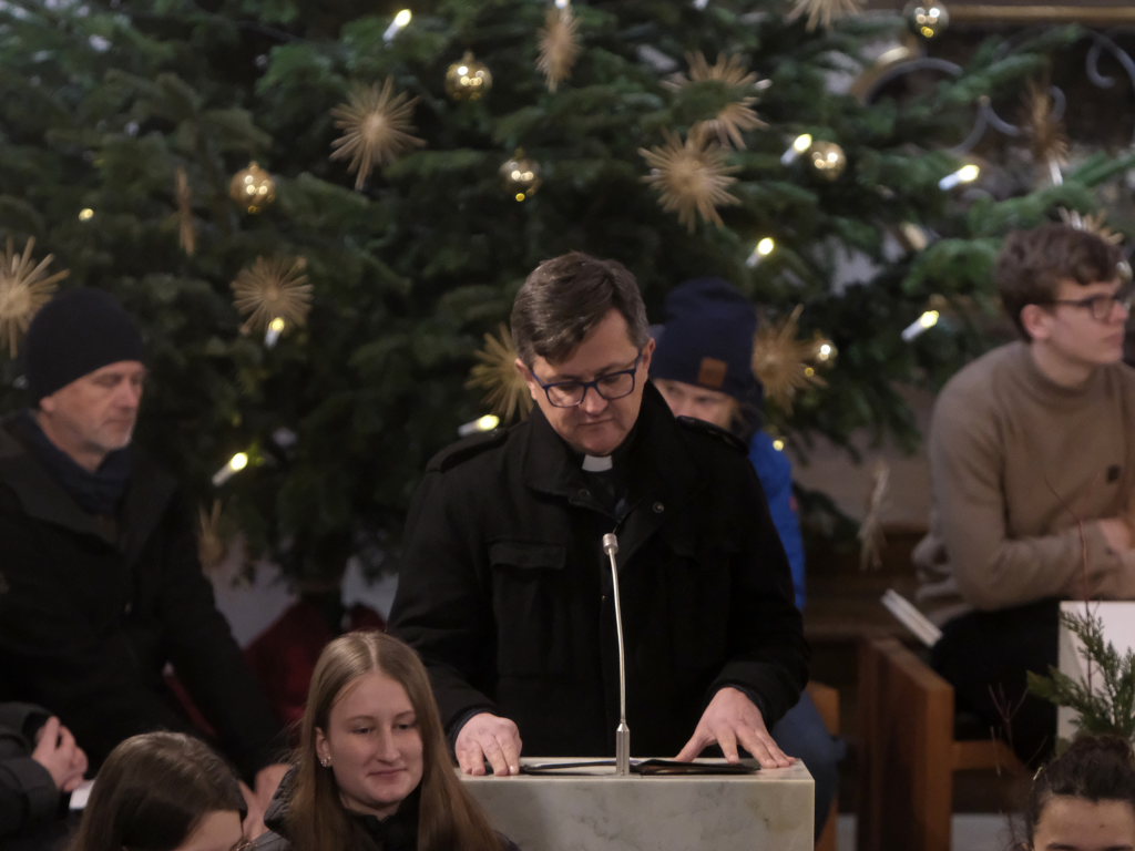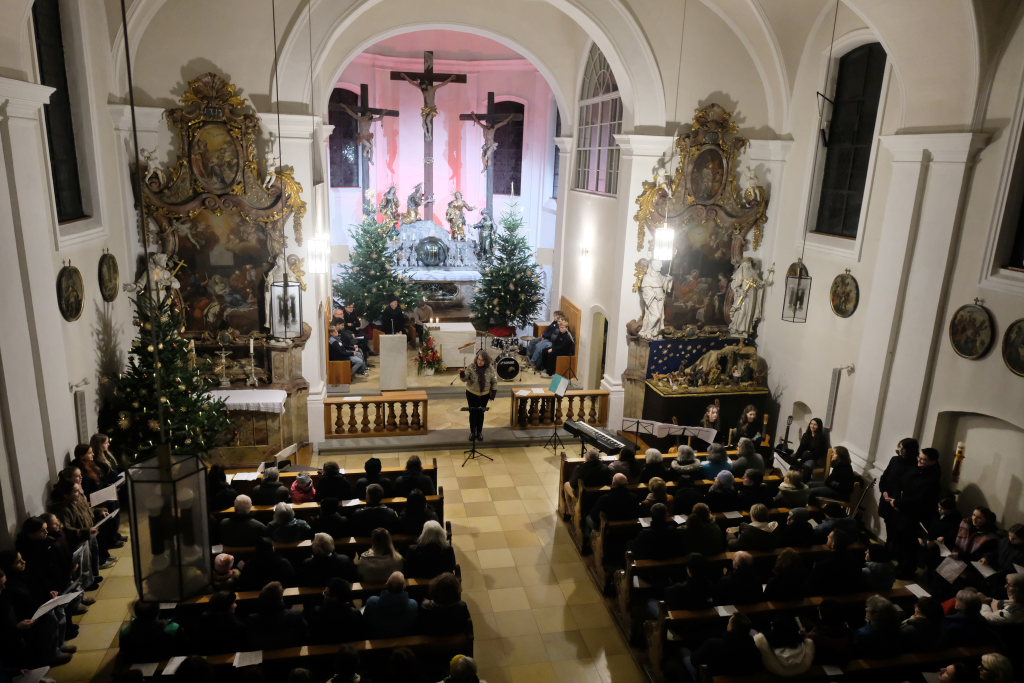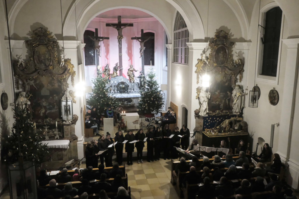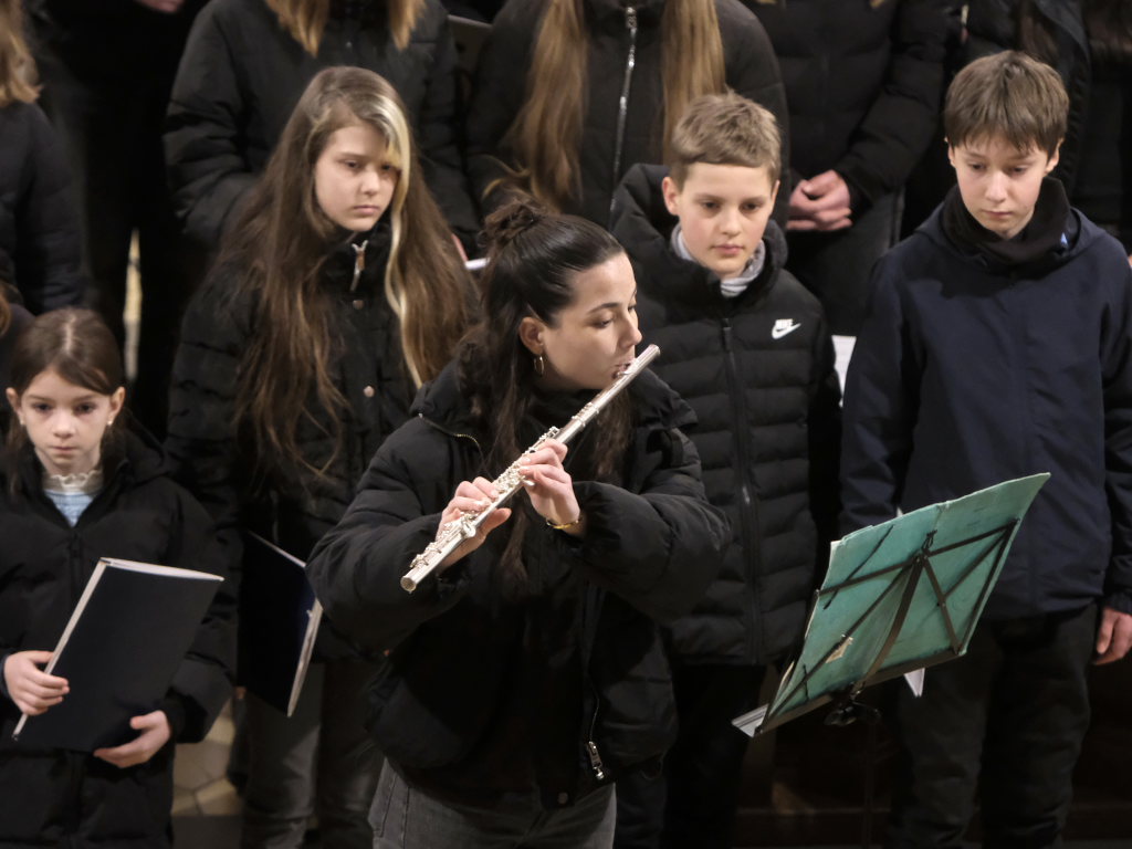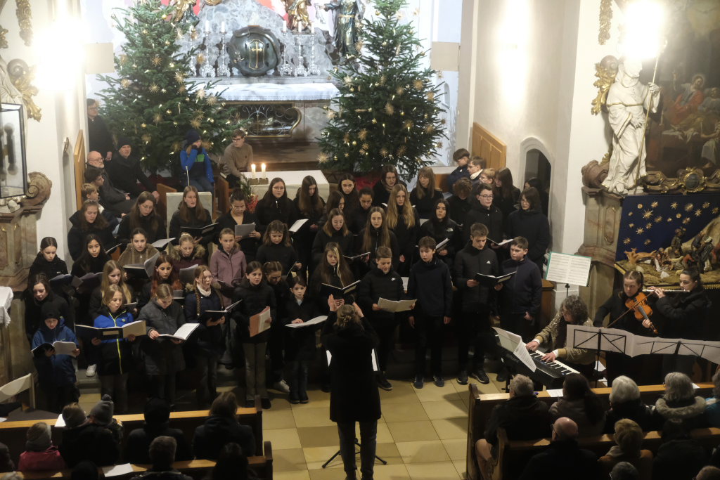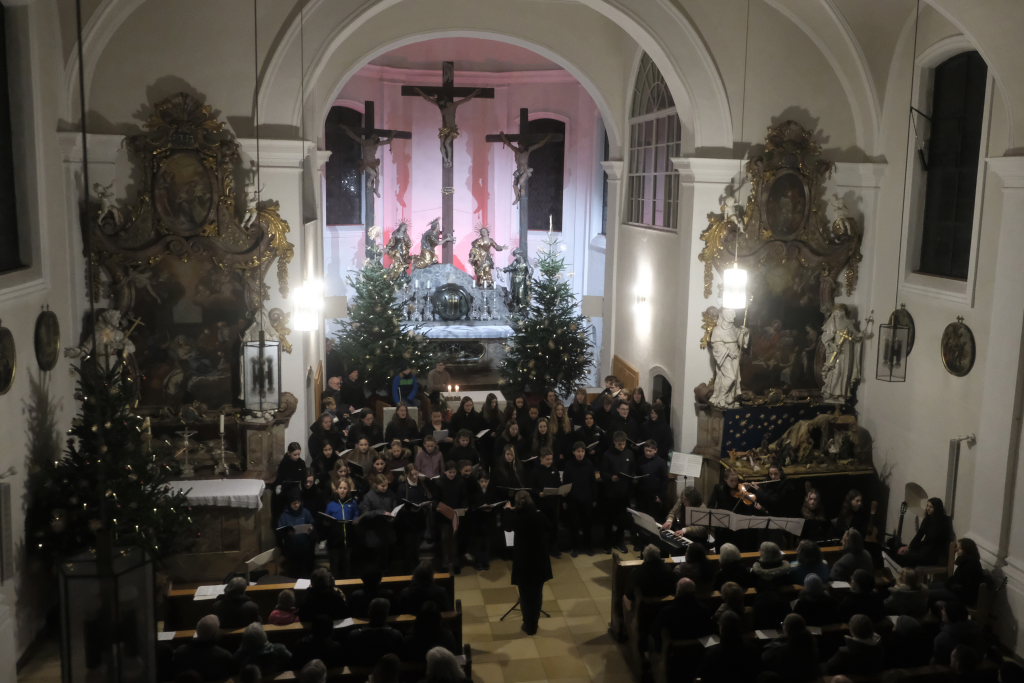 Engelsgleiche Stimmen bot das Vokalensemble bei den beiden John Rutter Stücken „The Peace of God“ und „I will sing with the spirit“ sowie „Caresse sur l´ocean“ bei dem sich Elise Kazmeier und Hannah Gräber als Solistinnen auszeichnen konnten. Als drittes Stück hatte das Vokalensemble von John Rutter „I will sing with the spirit“ einstudiert. Auch „Aria“, das Anna Butscher mit ihrer Querflöte und Bernadette Vogt am Klavier danach präsentierten, stammt aus der Feder des englischen Komponisten und Dirigenten, der vor wenigen Monaten im benachbarten Rot an der Rot aus Anlass des Klosterjubiläums einen Auftritt hatte, ehe Schulleiter Klaus Amann einige Schlussworte zu dem Konzert und Pater Mariusz ein Gebet sprachen.