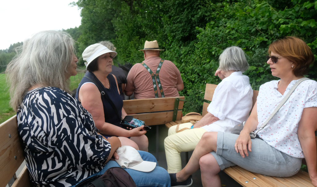 Bad Wurzach / Hauerz – Es war ein buntes Völkchen, das sich vor kurzem nach Hauerz aufmachte, um mit zwei Kutschen die Wälder rund um Hauerz zu erkunden: Die Betreuungsgruppe für ältere Menschen und für pflegende Angehörige, genannt „Der Fröhliche Nachmittag“, machten diesen Ausflug.