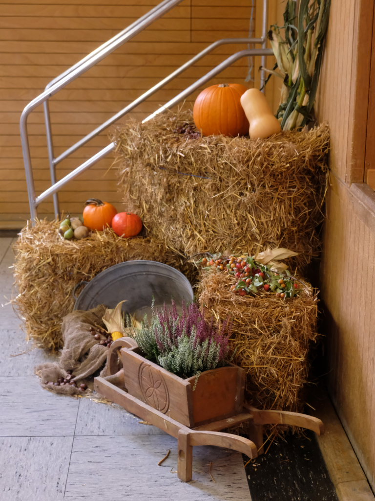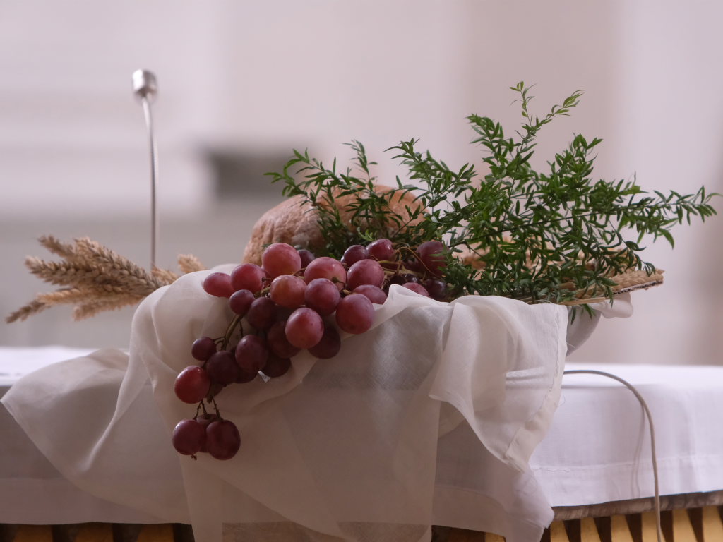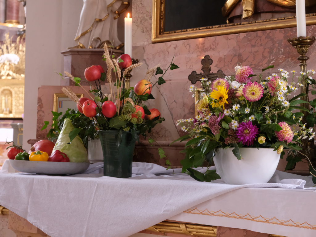 Pfarrer Stefan Maier hatte zuvor beim Erntedankfestgottesdienst die mitgebrachten Erntegaben gesegnet. In seiner Predigt bezog er sich auf die Lesung aus dem Buch Deuteronium, in dem die Menschen darauf hingewiesen wurden, dass die gute Ernte nicht nur ihr eigener Verdienst sei, sondern dass sie allen Grund hätten, sich bei Gott zu bedanken. Grund zur Dankbarkeit hätten auch die anderen neun von zehn Aussätzigen gehabt, die Jesus im Evangeliumswort geheilt hatte. Aber nur einer, bezeichnenderweise ein Samariter – also ein Ausländer – kam zu Jesus nach der Heilung zurück, um sich bei ihm zu bedanken. Jesus antwortete ihm: „Dein Glaube hat dich gerettet.“