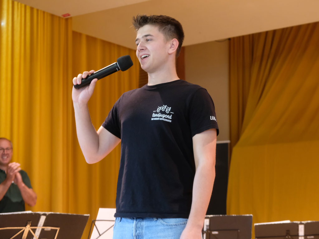 Gospoldshofen – Seit nunmehr 72 Jahren veranstaltet die Landjugend Gospoldshofen das Erntedankfest in Bad Wurzach. Gemeinsam mit den Mühlenfestmusikanten konnte Lukas Rast, der seit Mai gemeinsam mit Hanna Gruber die Geschicke der Landjugend Gospoldshofen leitet, dazu an diesem Sonntagmorgen, 5. Oktober, wieder zahlreiche Gäste in der Turn- und Festhalle Bad Wurzach begrüßen.