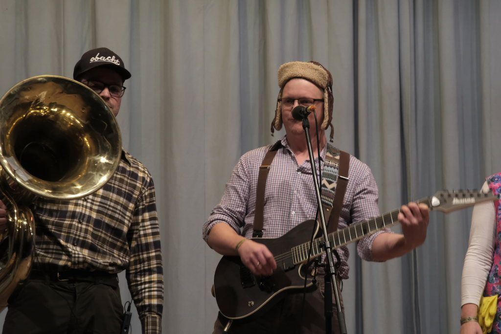 Die Musikkapelle Harmonie Unterschwarzach griff bei ihrem musikalischen Beitrag auf ein Stück der Schrillen Fehlaperlen zurück, bei dem es im Refrain heißt: „Was goht des di ah, des goht di gar nix ah, mir singat bloß a liad dr vo.“