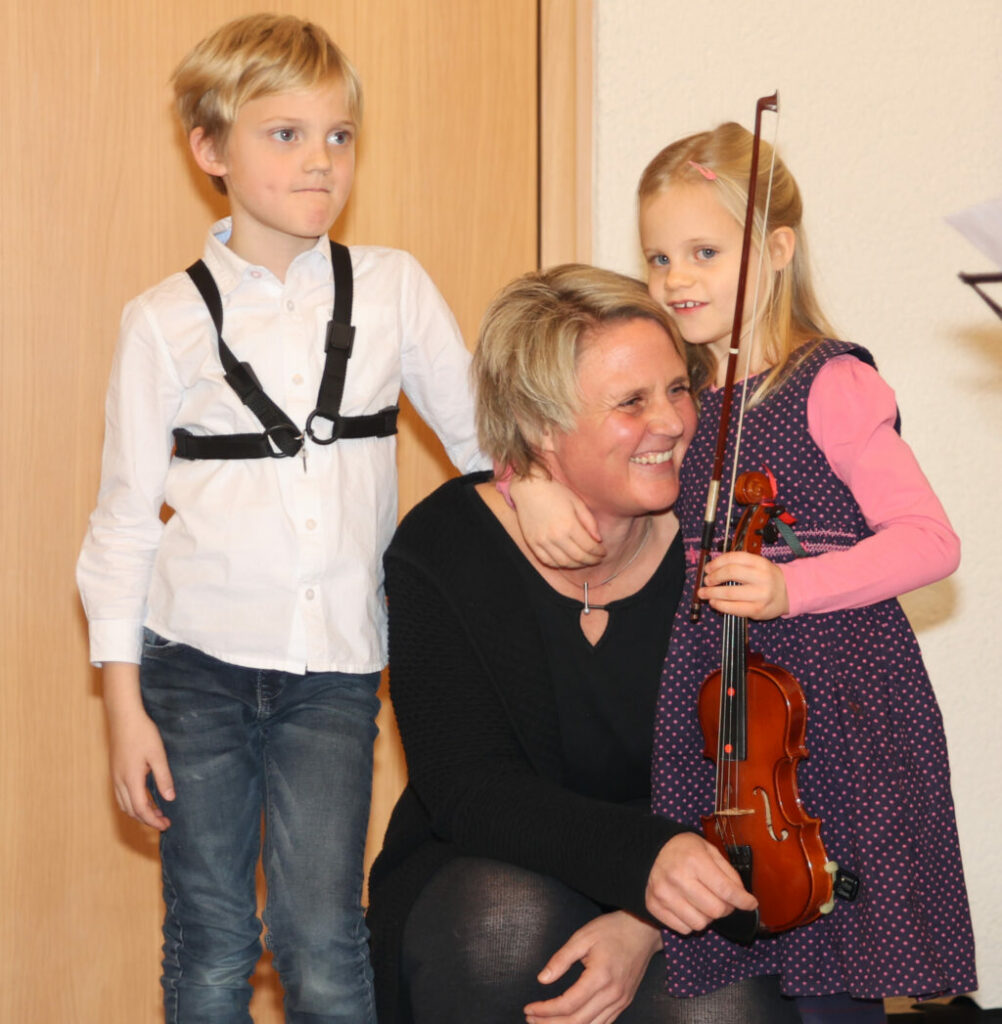 Die stolze Mutter mit ihren musikalischen Kindern.