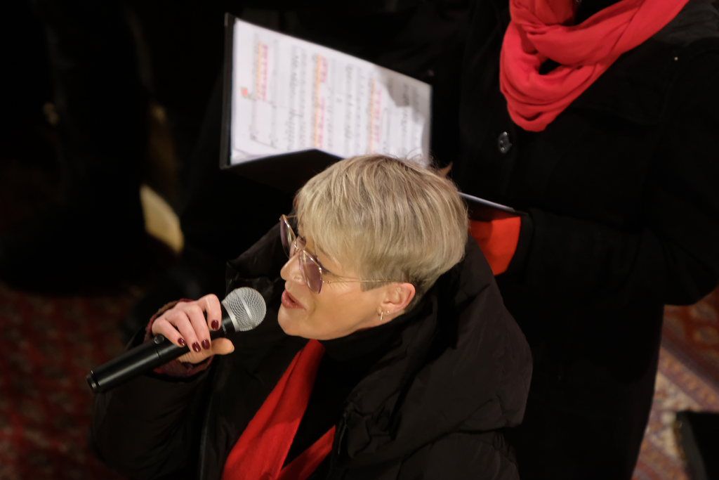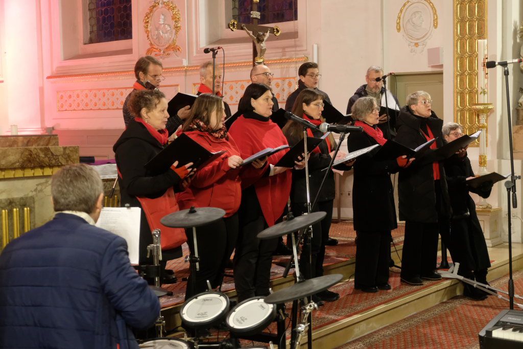 Mit einem Projektchor eröffnete Chorioso seinen zweiten Konzertteil. Dieser sang amerikanische Popweihnachtslieder wie „Do they know it´s Christmas Time?“ oder „All I want for Christmas is you“. Er beendete seinen Programmteil mit „The little drummerboy“, ein Lied, das einst im Jahre 1977 mit Bing Crosby und David Bowie zwei Größen unterschiedlicher Musikergenerationen mit dem Untertitel Peace on Earth bei einem Weihnachts-Spezial vereinte. Ein Lied also, das durch das aktuelle Weltgeschehen wieder enorm an Aktualität gewonnen hat.