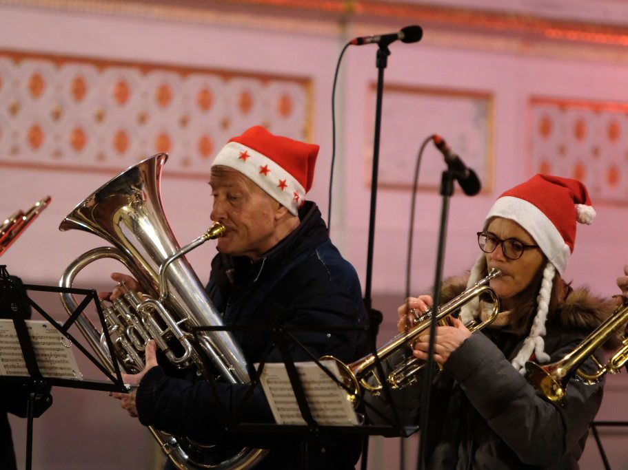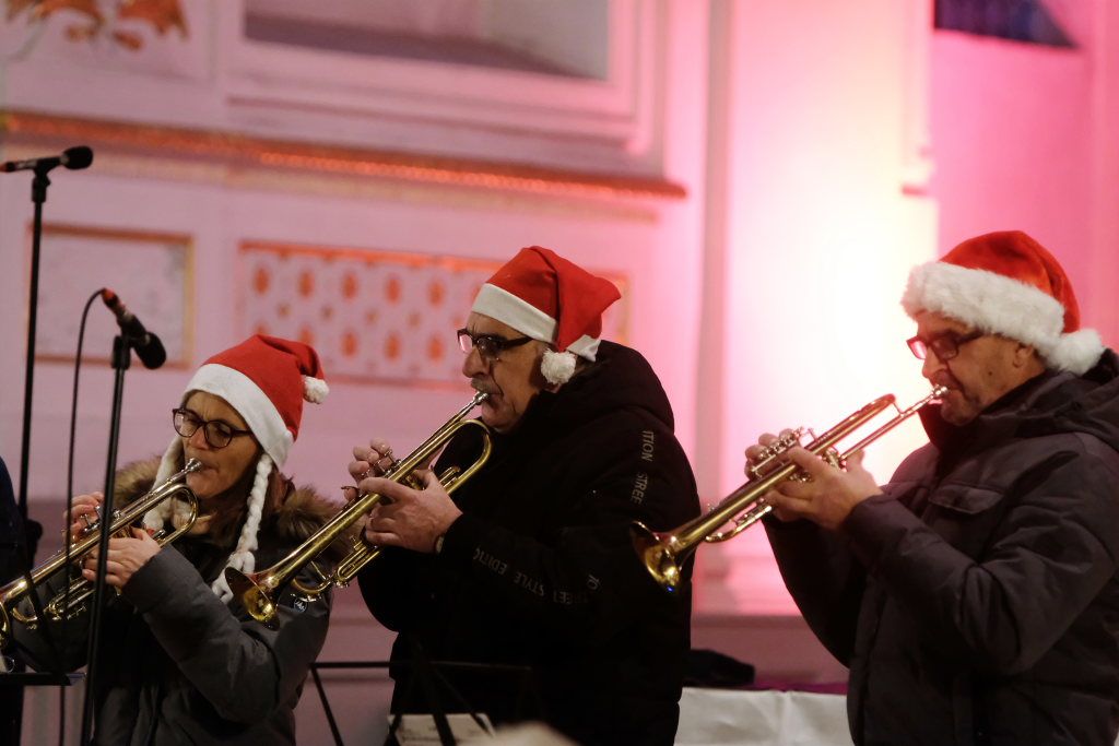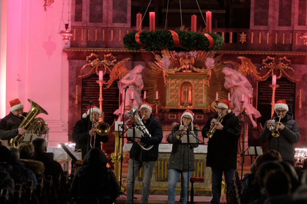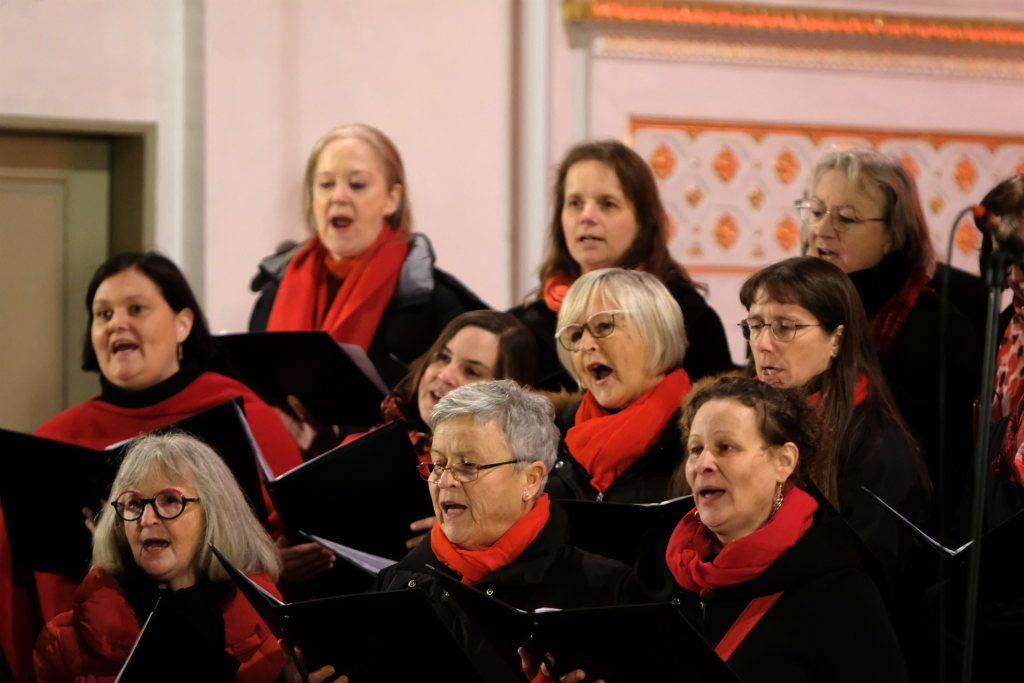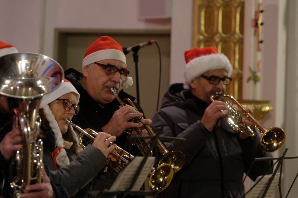 Mit „Oh holy night“ wechselten Chorleiterin Katja Erath und ihr Chor das Genre. Obwohl das Lied von Adolph Adam 1847 zunächst mit einem französischen Text versehen wurde, entstand die heute bekannte Version mit englischem Text erst acht Jahre später. Hierzulande bekannt wurde es vor allem durch die Pop-Größen Mariah Carrey und Celine Dion. Mit dem Lied „Heilige Nacht“ beendete der Chor seinen ersten Konzertteil und machte Platz für die Christmas Blower des Musikvereines Treherz.