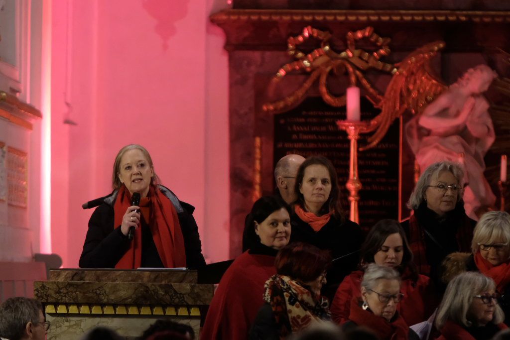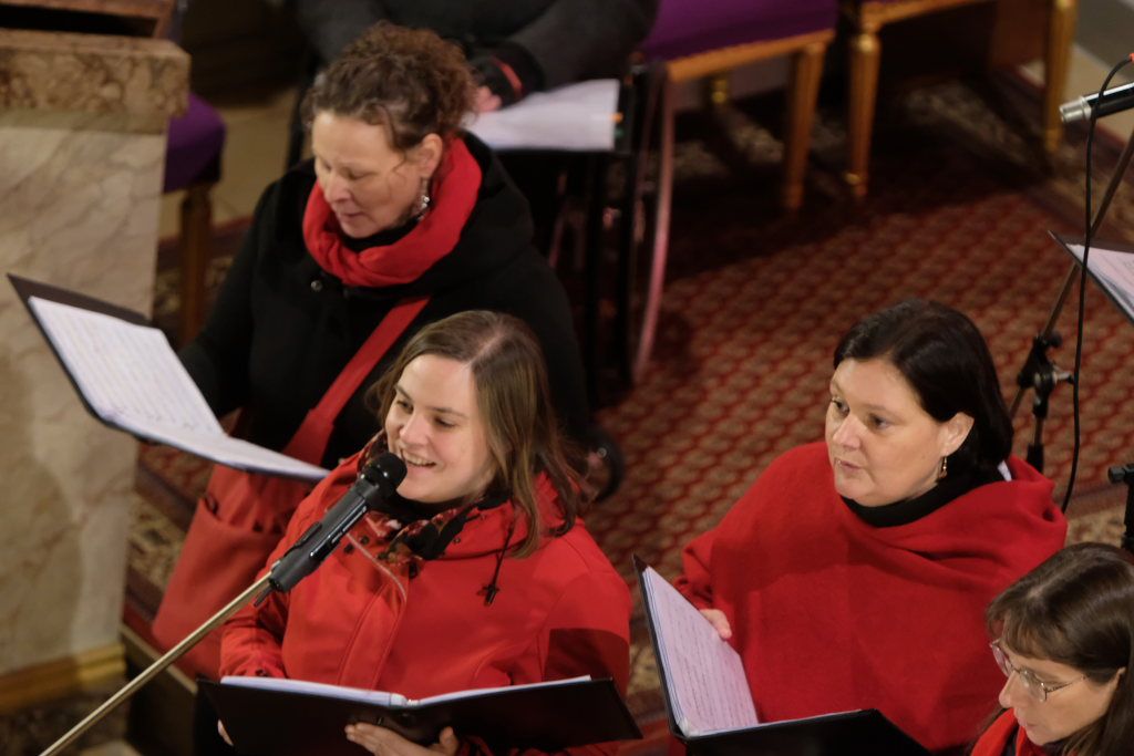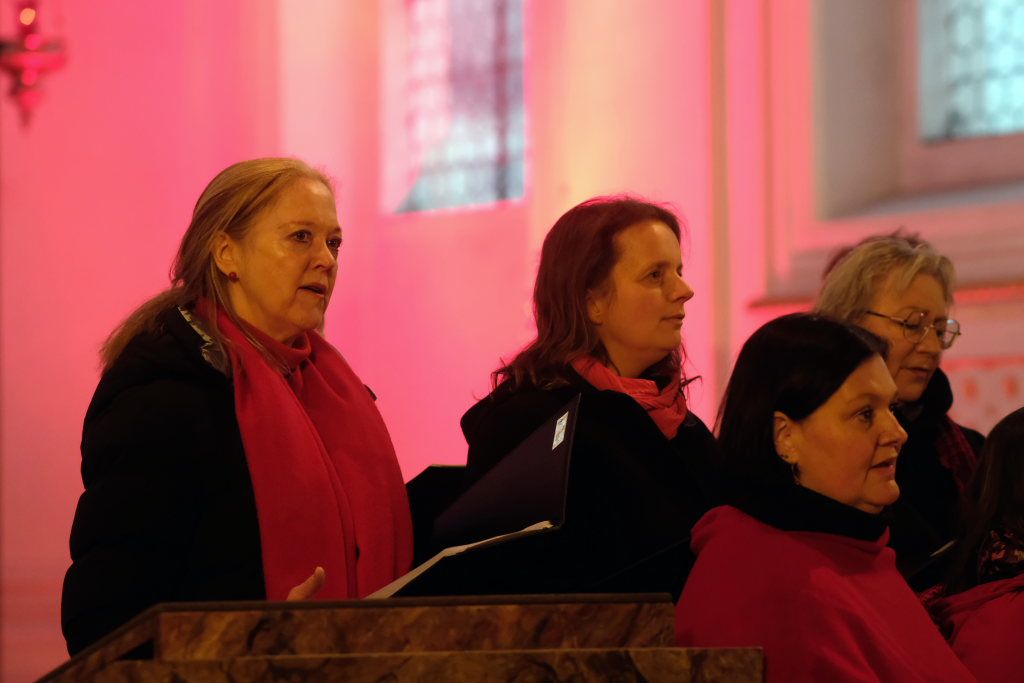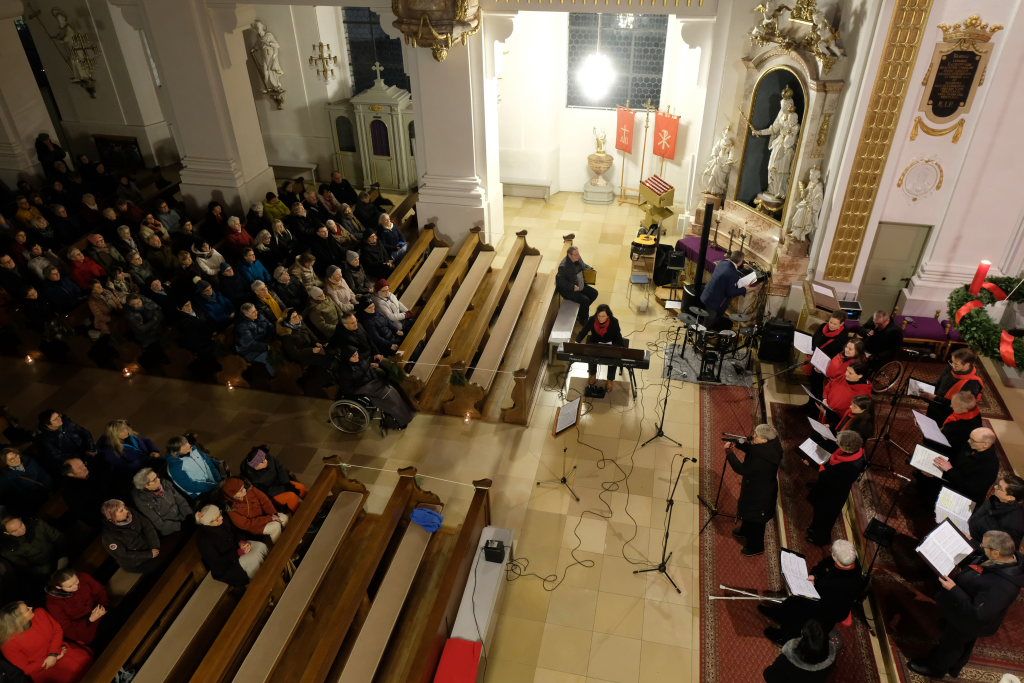 Chorioso eröffnete das Konzert mit dem Lied „Sing ma im Advent“ des österreichischen Komponisten und Poeten Lorenz Maierhofer, gefolgt von „Angels´Carols“ eine „himmlisch“ eingängige Komposition des Engländers John Rutter. Die Melodie des dritten Liedes, das der Chor sang, stammt ursprünglich aus dem Frankreich des 18. Jahrunderts und ist ein Kirchenlied, das Eingang in das Gotteslob (Nr. 250) gefunden hat. Bei „Engel auf den Feldern singen“ konnte man als Zuhörer bei geschlossenen Augen durchaus sich auf die biblischen Felder bei Bethlehem versetzt fühlen.