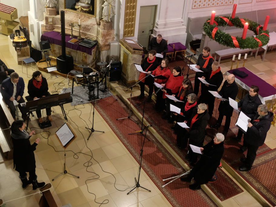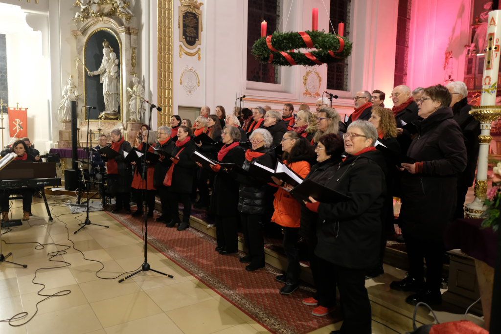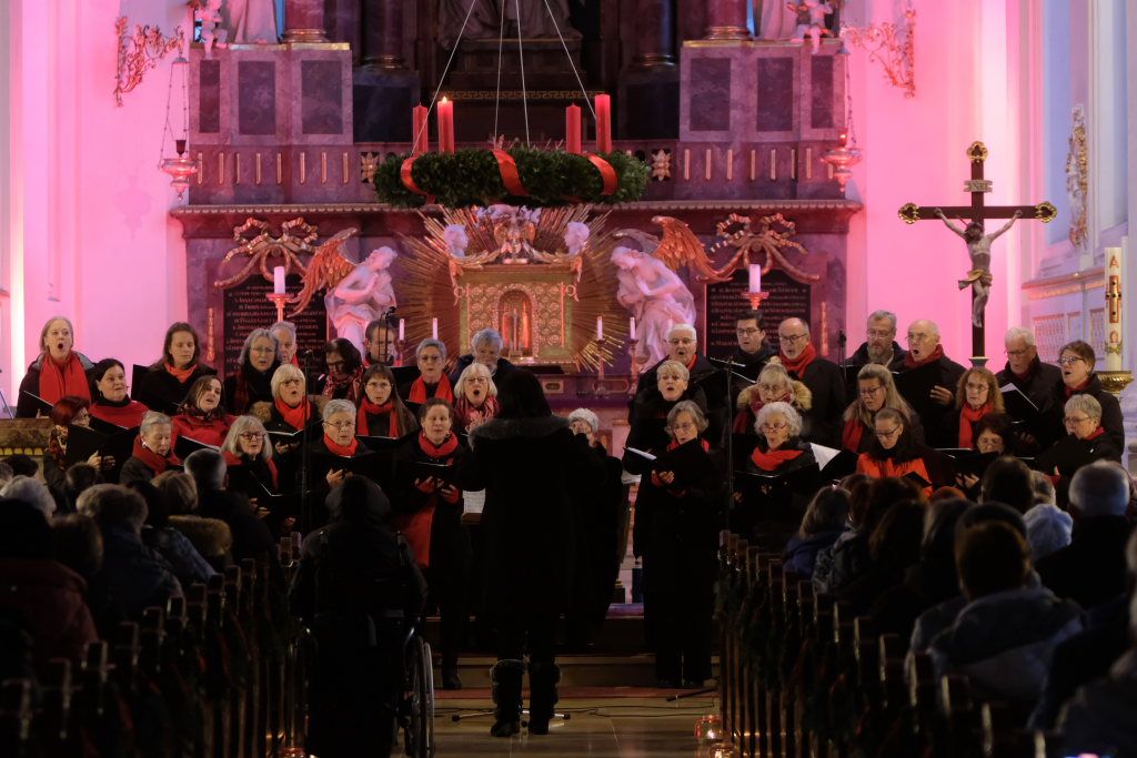 Bad Wurzach – Der Liederkranz Chorioso hatte zum traditionellen adventlichen Singen in die St. Verena Kirche eingeladen und als musikalische Gäste die Christmas-Blowers aus Treherz mitgebracht. Sehr viele waren dieser Einladung gefolgt und wurden mit Weihnachtsliedern aus aller Welt auf die „Stille Zeit“ eingestimmt.