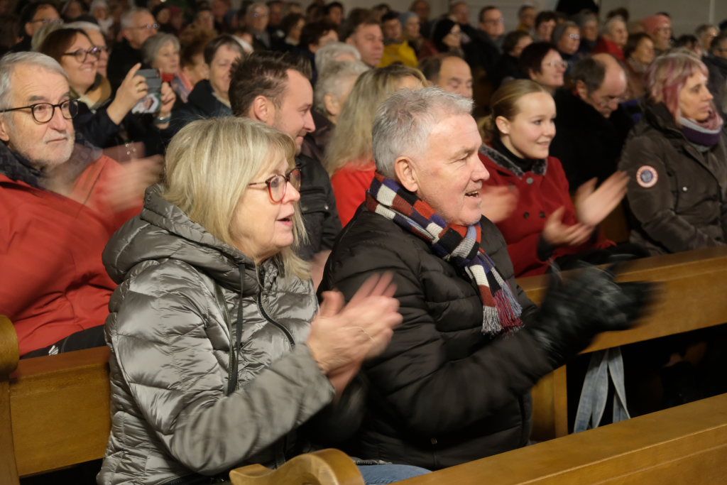 Traditionell beendete der Liederkranz Chorioso das Konzert mit dem Weihnachtsklassiker „O du fröhliche“ gemeinsam mit dem Publikum. Solchermaßen gepusht, verlangte dieses daraufhin nach einer Zugabe. Und bekam sie in Form eines weiteren Weihnachtsliedes aus dem Pop-Genre: „Feliz Navidad“ stammt aus der Feder des puerto-ricanischen Sängers José Feliciano, das dieser 1970 auf seinem Christmas Album veröffentlichte. Doch danach war noch lange nicht Schluss: Im Anschluss an das Konzert lud der Liederkranz die Konzertbesucher ins benachbarte Pius-Scheel-Haus, um mit den Gästen – ebenfalls eine lange Tradition – danach mit Glühwein, Punsch und Weihnachtsgebäck noch ein wenig zu feiern.
