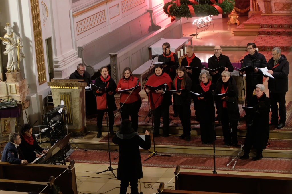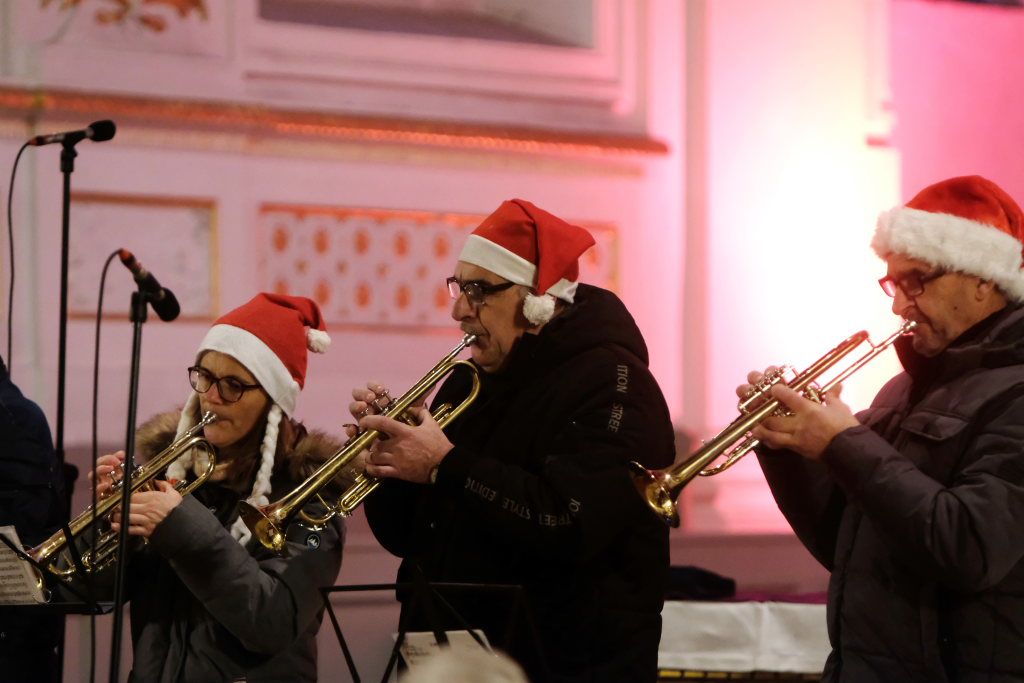 Mit „Oh holy night“ wechselten Chorleiterin Katja Erath und ihr Chor das Genre. Obwohl das Lied von Adolph Adam 1847 zunächst mit einem französischen Text versehen wurde, entstand die heute bekannte Version mit englischem Text erst acht Jahre später. Hierzulande bekannt wurde es vor allem durch die Pop-Größen Mariah Carrey und Celine Dion. Mit dem Lied „Heilige Nacht“ beendete der Chor seinen ersten Konzertteil und machte Platz für die Christmas Blower des Musikvereines Treherz.