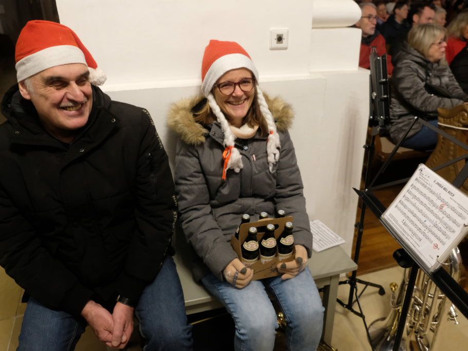 Traditionell beendete der Liederkranz Chorioso das Konzert mit dem Weihnachtsklassiker „O du fröhliche“ gemeinsam mit dem Publikum. Solchermaßen gepusht, verlangte dieses daraufhin nach einer Zugabe. Und bekam sie in Form eines weiteren Weihnachtsliedes aus dem Pop-Genre: „Feliz Navidad“ stammt aus der Feder des puerto-ricanischen Sängers José Feliciano, das dieser 1970 auf seinem Christmas Album veröffentlichte. Doch danach war noch lange nicht Schluss: Im Anschluss an das Konzert lud der Liederkranz die Konzertbesucher ins benachbarte Pius-Scheel-Haus, um mit den Gästen – ebenfalls eine lange Tradition – danach mit Glühwein, Punsch und Weihnachtsgebäck noch ein wenig zu feiern.