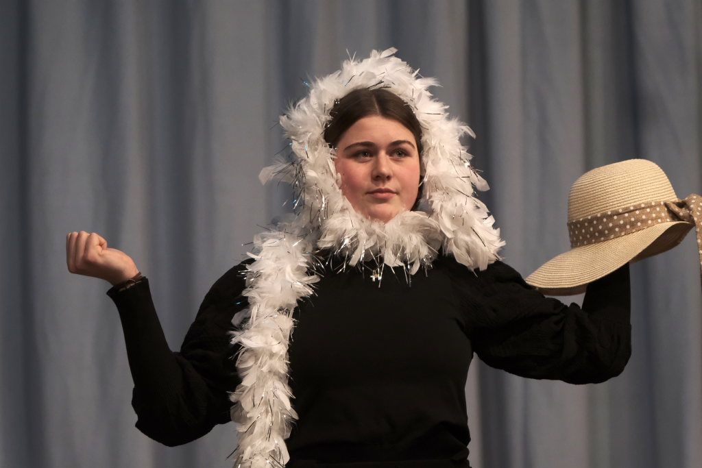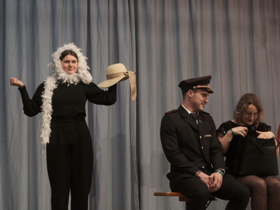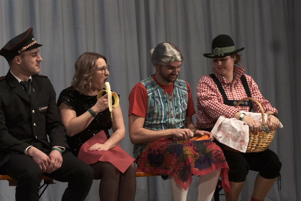 Obwohl der erste Sketch ganz ohne Worte auskam, sorgten die Gütlers (Anna, Franziska, Sandra) gemeinsam mit ihren Mitspielern vom Musikverein Eggmannsried allein durch ihre pantomimischen Talente für großes Amüsement bei den Ballbesuchern.