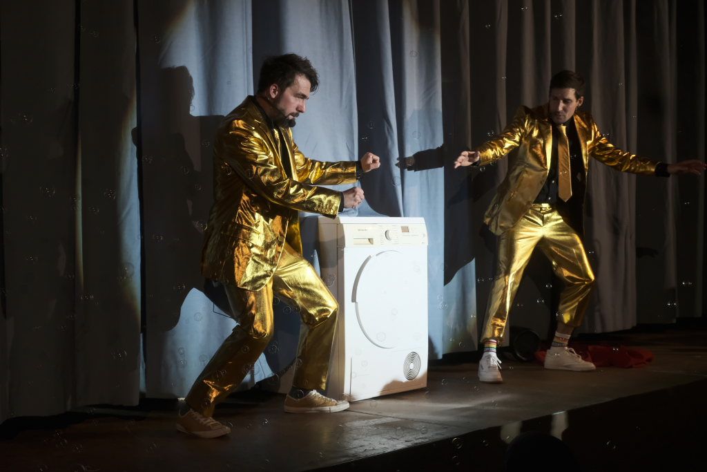 Die beiden Ansager Bo und Nix (Berthold Menig und Christian Wiest) entführten in ihren goldglänzenden Anzügen die Ballbesucher in die magische Welt der Zauberei, wobei sie allerdings öfters – wie etwa beim Kartentrick – mit „gezinkten“ Karten spielten.