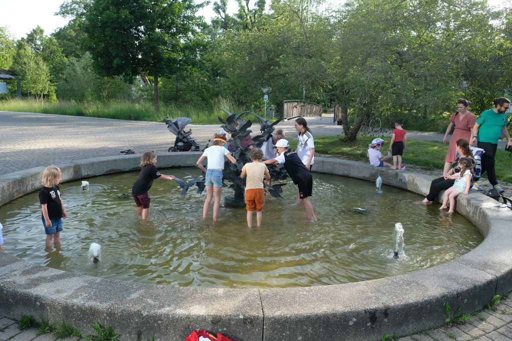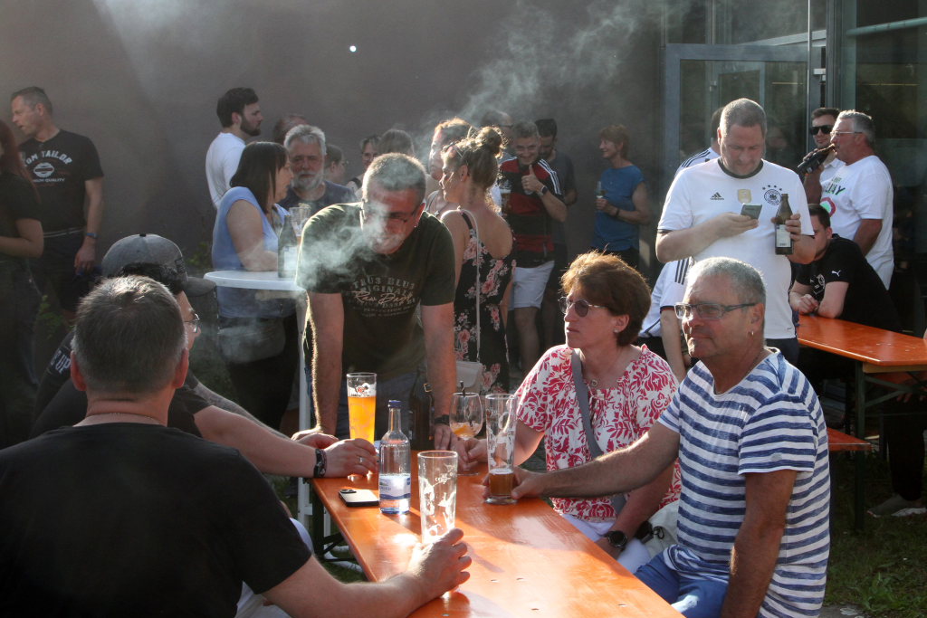 Während der Fan-Nachwuchs zum Großteil die Pause nutzte, um sich im Möwenbrunnen, der zweieinhalb Wochen zuvor noch bis zum Rand mit Wasser aus dem Ried gefüllt war, „abzukühlen“, sorgten die Erwachsenen für Getränkenachschub und nachdem es dieses Mal auch einen Grillwagen gab, für die eine oder andere Stadionwurst.