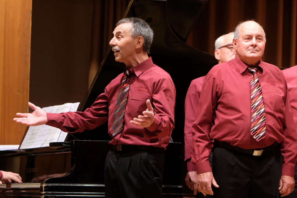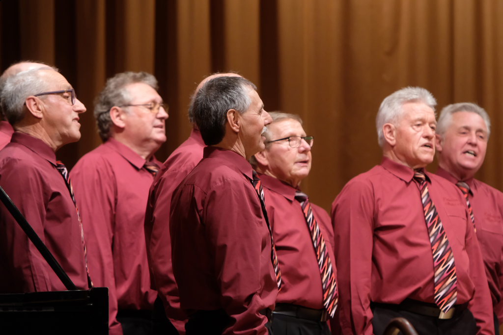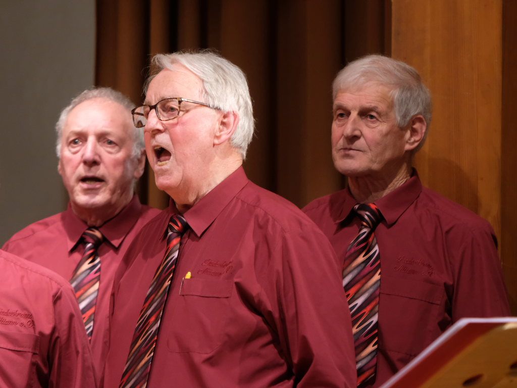 Der Männerchor eröffnete sein Konzertprogramm, bei dem er in bewährter Manier von Franz Ott am Flügel begleitet wurde, mit dem Seemannslied, mit dem Freddy Quinn einst weltberühmt wurde. Mit Liedern wie „Wochenend und Sonnenschein“ von den Comedian Harmonists, „Die kleine Kneipe“ von Peter Alexander, bei dem der ganze Saal fleißig mitsang oder dem Trinklied aus der Puccini-Oper La Traviata boten die Sänger des Männerchores Alttann beste Unterhaltung mit hochwertigem Chorgesang sowie großartigen Solisten. Josef Mattheis, der bei einigen Stücken die Sänger am Cajun begleitete, durfte sich auch als „Schwätzer vom Dienst“ betätigen, er übernahm die Ansagen zwischen den einzelnen Stücken. Und erzählte auch von den Fallstricken solcher Ansagen: „Wie peinlich wäre es, “ erklärte er vor dem Stück Jasmina, das (natürlich) von der Liebe zu einer Frau namens Jasmina erzählt, „wenn ich bei meiner Ansage erzählen würde, die Jasmin ist verblüht…“