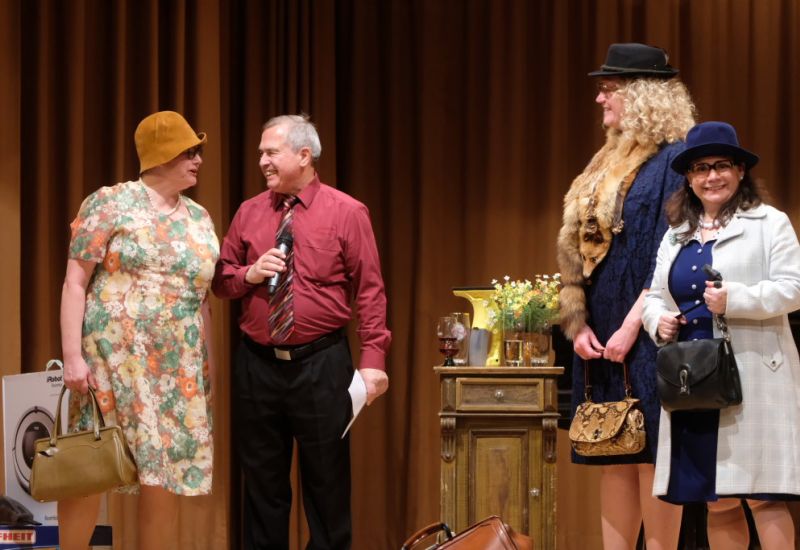 Ansager Josef Mattheis übergab natürlich den musikalischen „Staffelstab“ vor dem letzten Stück „Männer mag man eben“ des Männerchores nicht ohne Frotzelei an das Damen-Sextett. „Wie bringt man eine Frauenrunde zum Schweigen?“ fragte er. „Jetzt schwätzet hintereinander und die Älteste fangt a!“