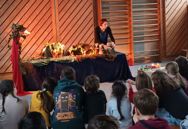 Am 9. Dezember war die Märchenerzählerin bei uns an der Grundschule Haid in Ziegelbach und in Haidgau. Um besser mit ihr ins Märchenland einsteigen zu können, hat sie uns einen Tropfen Orangenöl auf die Hand gegeben. Anschließend ist es mit dem Märchen „Die drei Wünsche“ losgegangen. Das zweite Märchen war „Der süße Brei“ und das dritte „Hänsel und Gretel“. Uns haben die Märchen alle sehr gut gefallen.