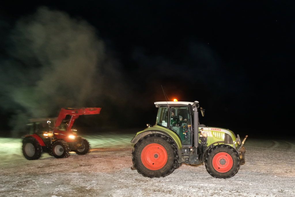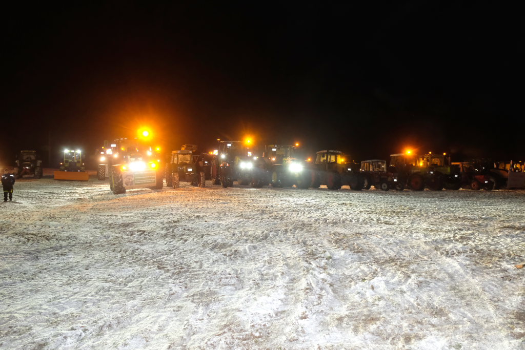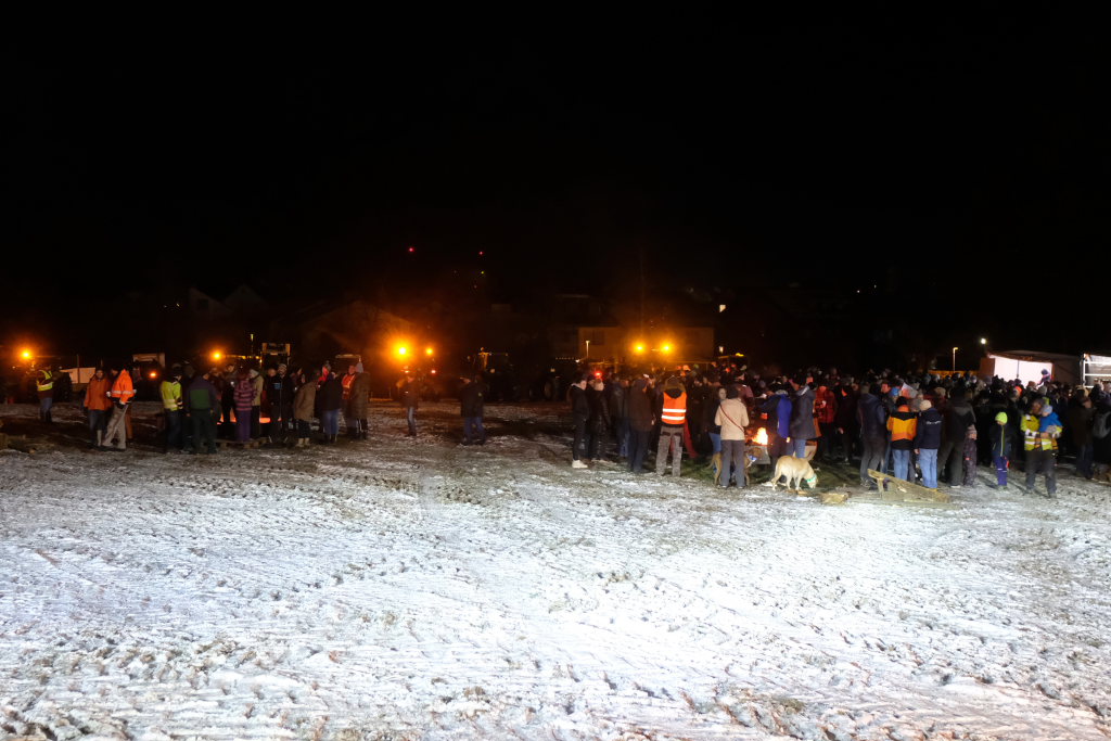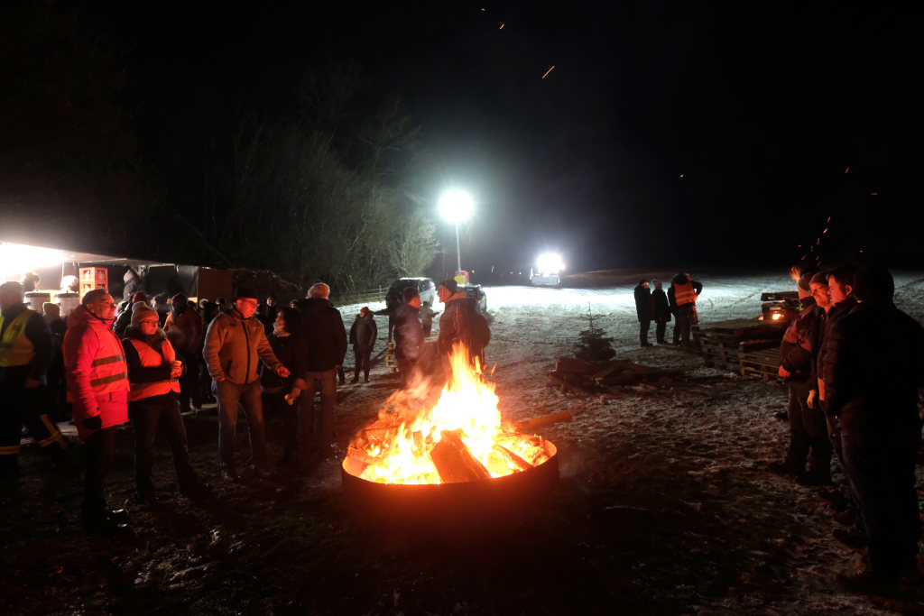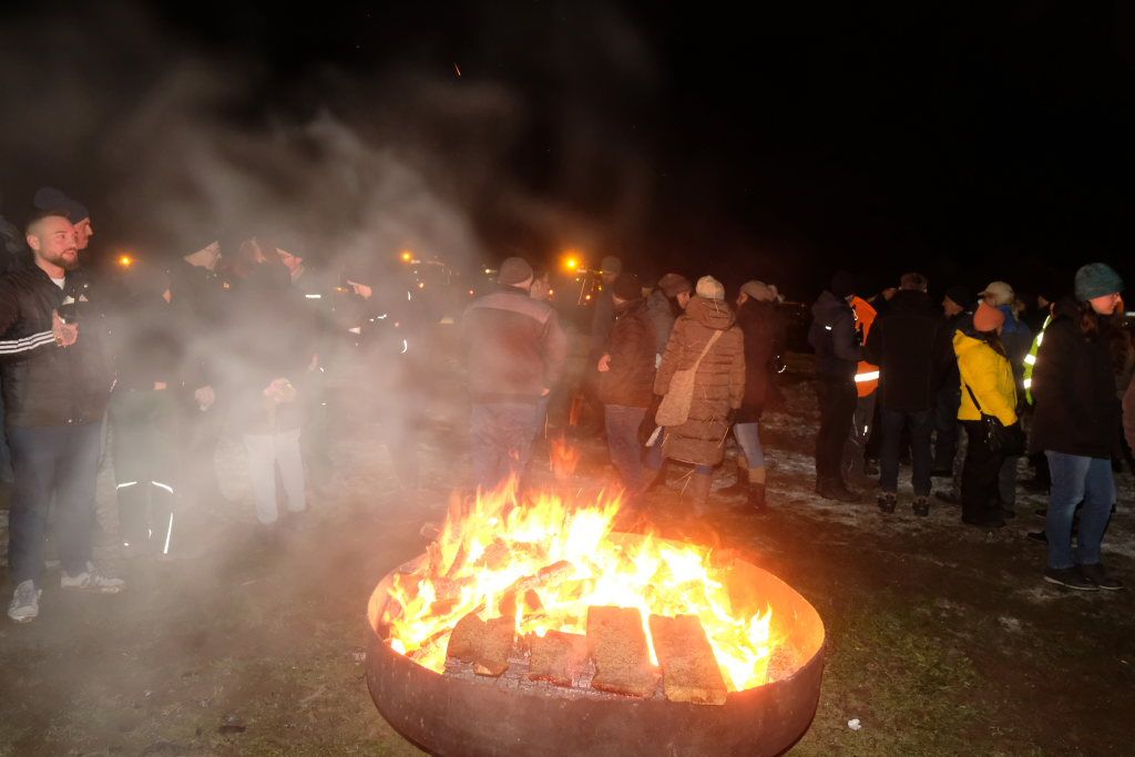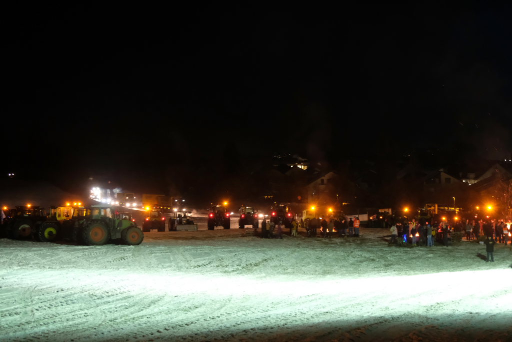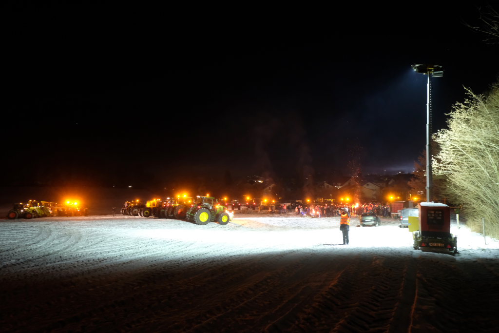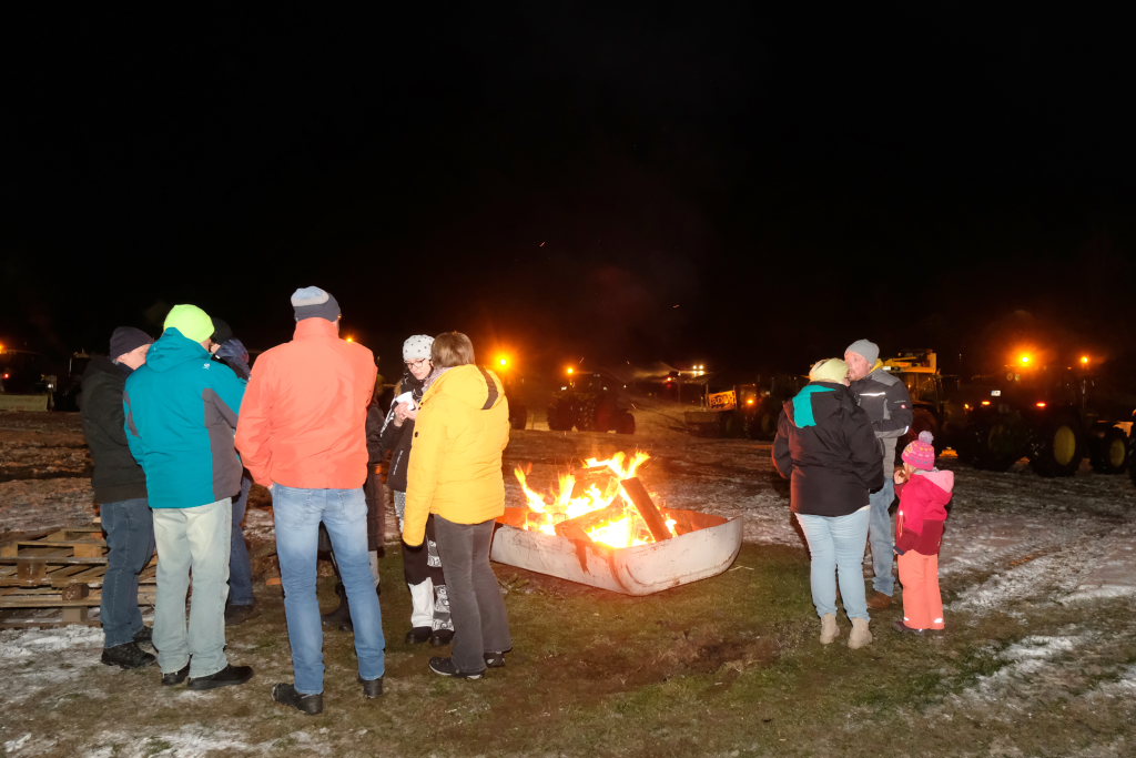 Dank großzügiger Spenden von Metzgereien und Bäckereien aus Hauerz, Eberhardzell, Haidgau und Diepoldshofen konnten die Organisatoren Wurstwecken sowie Getränke von der BAG an die Teilnehmer und Besucher des Events ausgeben, was der Veranstaltung einen gewissen Volksfestcharakter verlieh. Nach einem etwas zähen Beginn, als sich um kurz nach 19.00 Uhr nur wenige Teilnehmer um die Feuerschalen scharten – kein Wunder bei Minus-Temperaturen von mehr als zehn Grad – füllte sich das Gelände aber bald mit dem Eintreffen der Konvois.